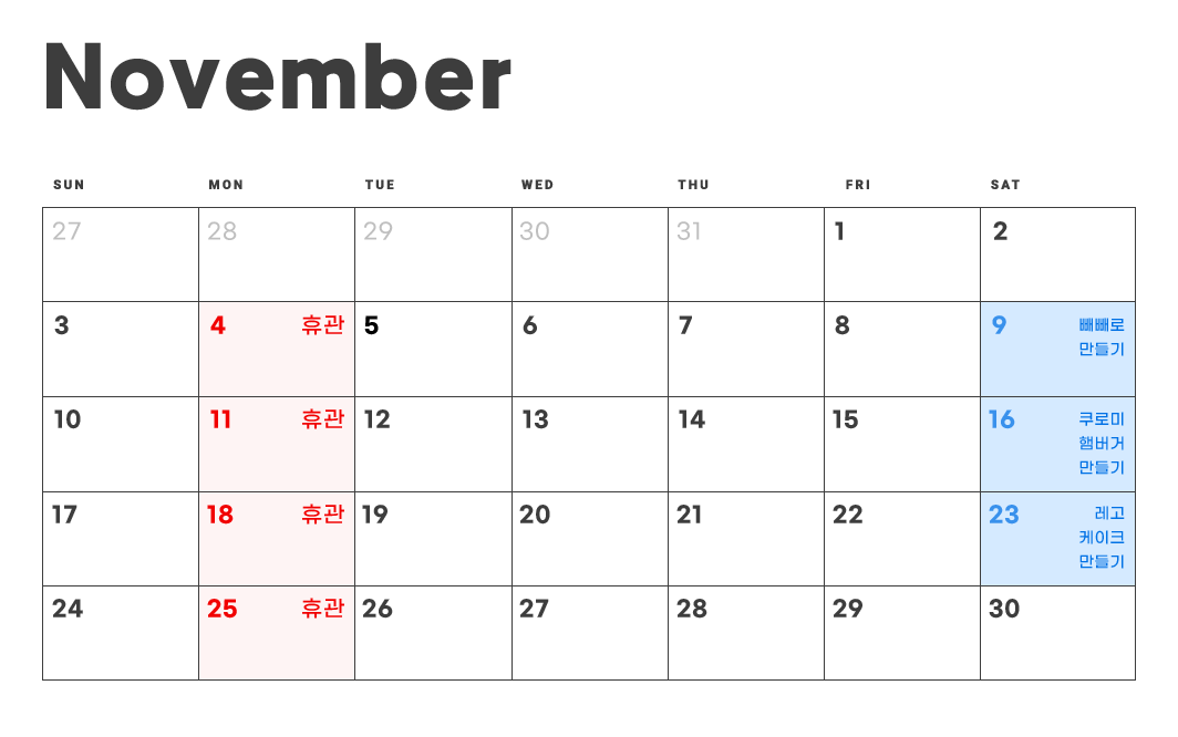 | 8 | 봉화정자문화생활관 11월의 누정 휴(休) 공간만들기 - 원데이클래스 안내 | 체육시설사업소 | 2024.10.17 | ![]() ![]() ![]() |