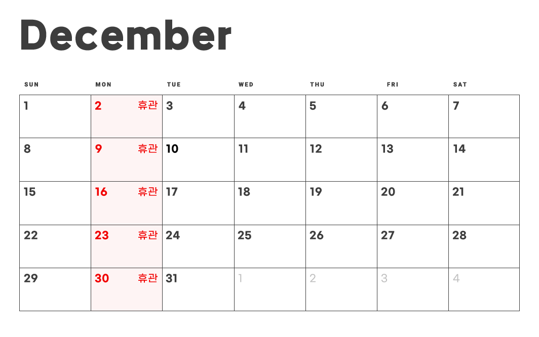 | 9 | 봉화정자문화생활관 12월의 누정 휴(休) 공간만들기 - DIY 안내 | 체육시설사업소 | 2024.12.06 | ![]() ![]() |
