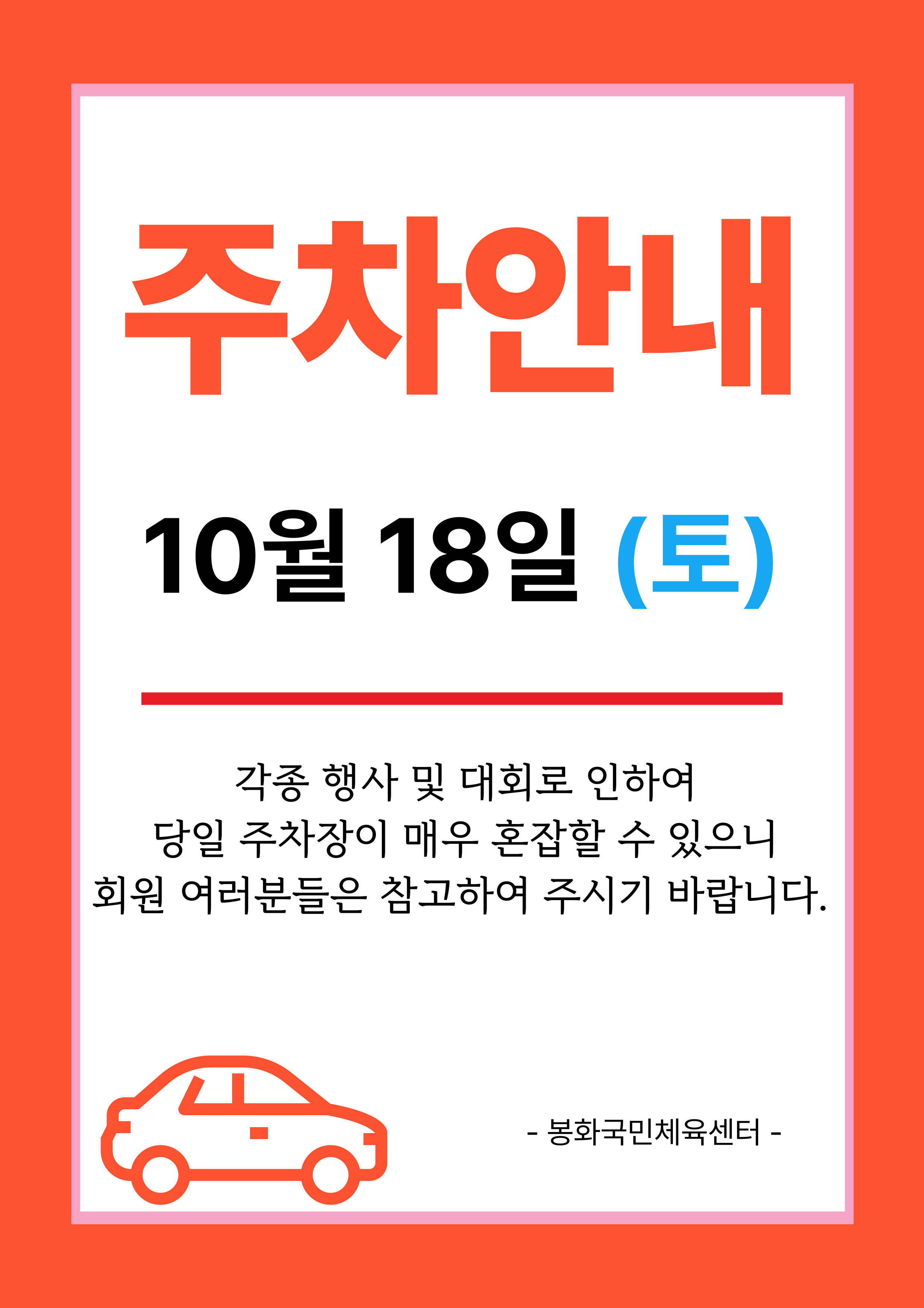| 101 | 봉화국민체육센터 10월 18일 주차 관련 안내 | 체육시설사업소 | 2025.10.15 | ![]() |