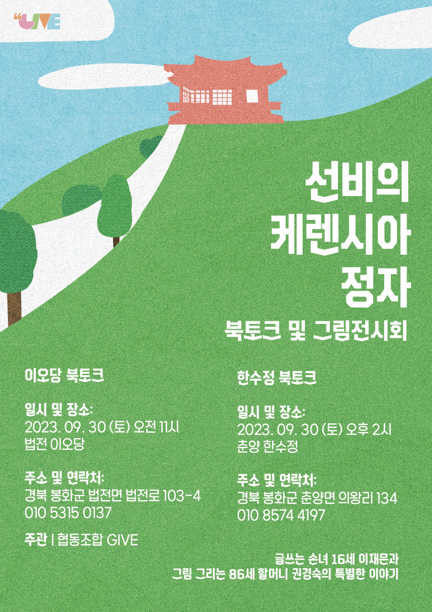 | 55 | 선비의 케린시아 정자 북토크 안내(법전 이오당, 춘양 한수정) | 체육시설사업소 | 2023.09.22 | ![]() |