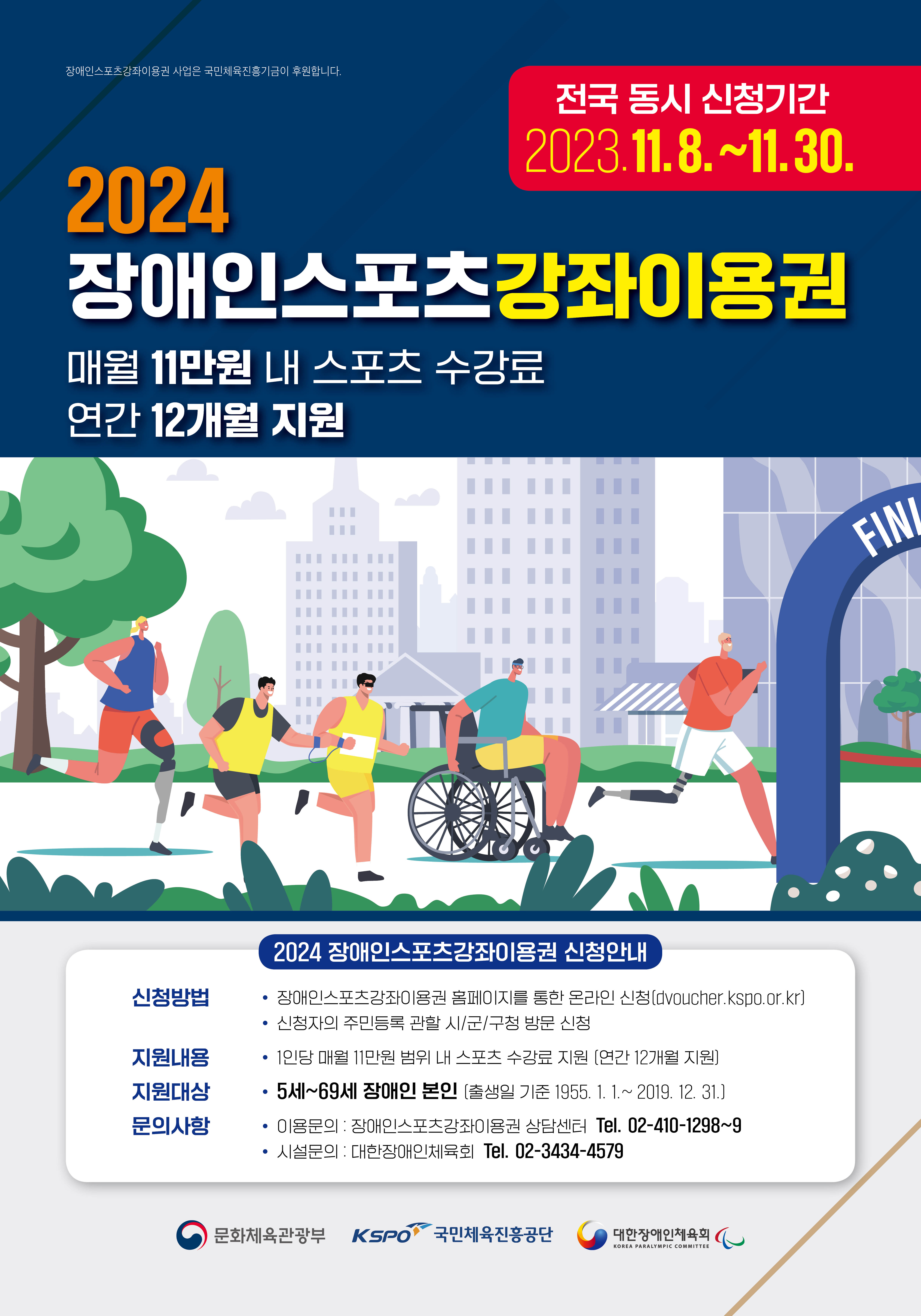 | 56 | 2024년 스포츠강좌이용권 및 장애인스포츠강좌이용권 신청 안내 | 김민지 | 2023.11.07 | ![]() ![]() |