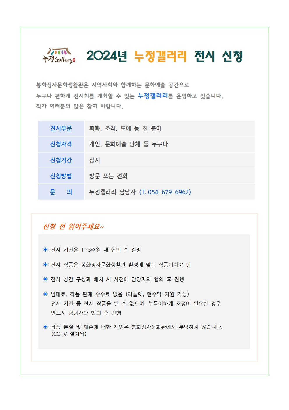 | 60 | 2024년도 누정갤러리 전시 신청 안내 | 체육시설사업소 | 2023.12.15 | ![]() |