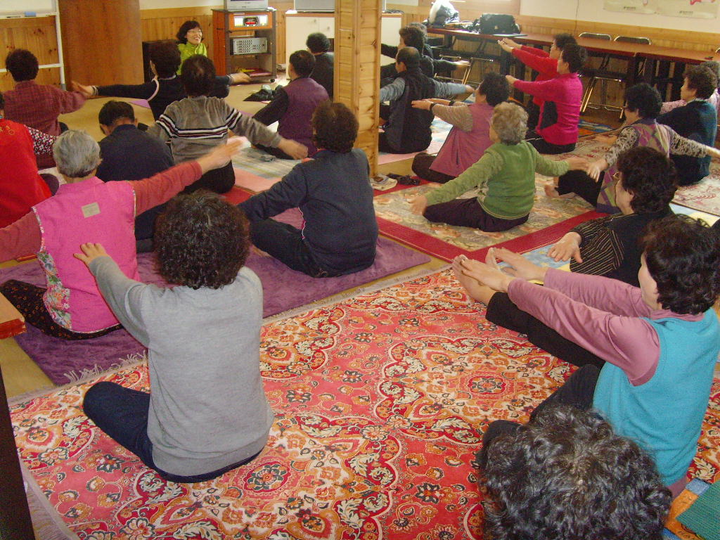 농촌노인들의 노후생활 질을 높이고 건강하고 아름다운 노후를 보낼 수 있도록 석포면 대현2리 노인 40명을 대상으로 노후 활동 프로그램으로 요가체조를 실시하고 있습니다.
