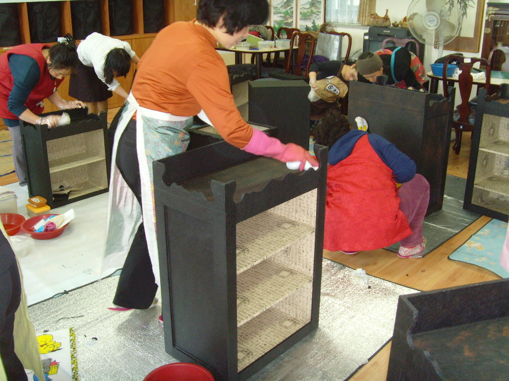 한달간 한지를 이용하고 자르고 부치고 다듬어서 3단장을 만들었습니다.