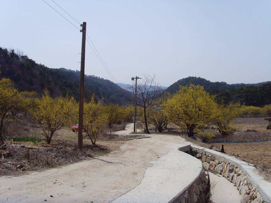 마을에 들어서자 마자 산이며 밭이며 길쪽으로 산수유나무꽃이 눈에 들어옵니다.