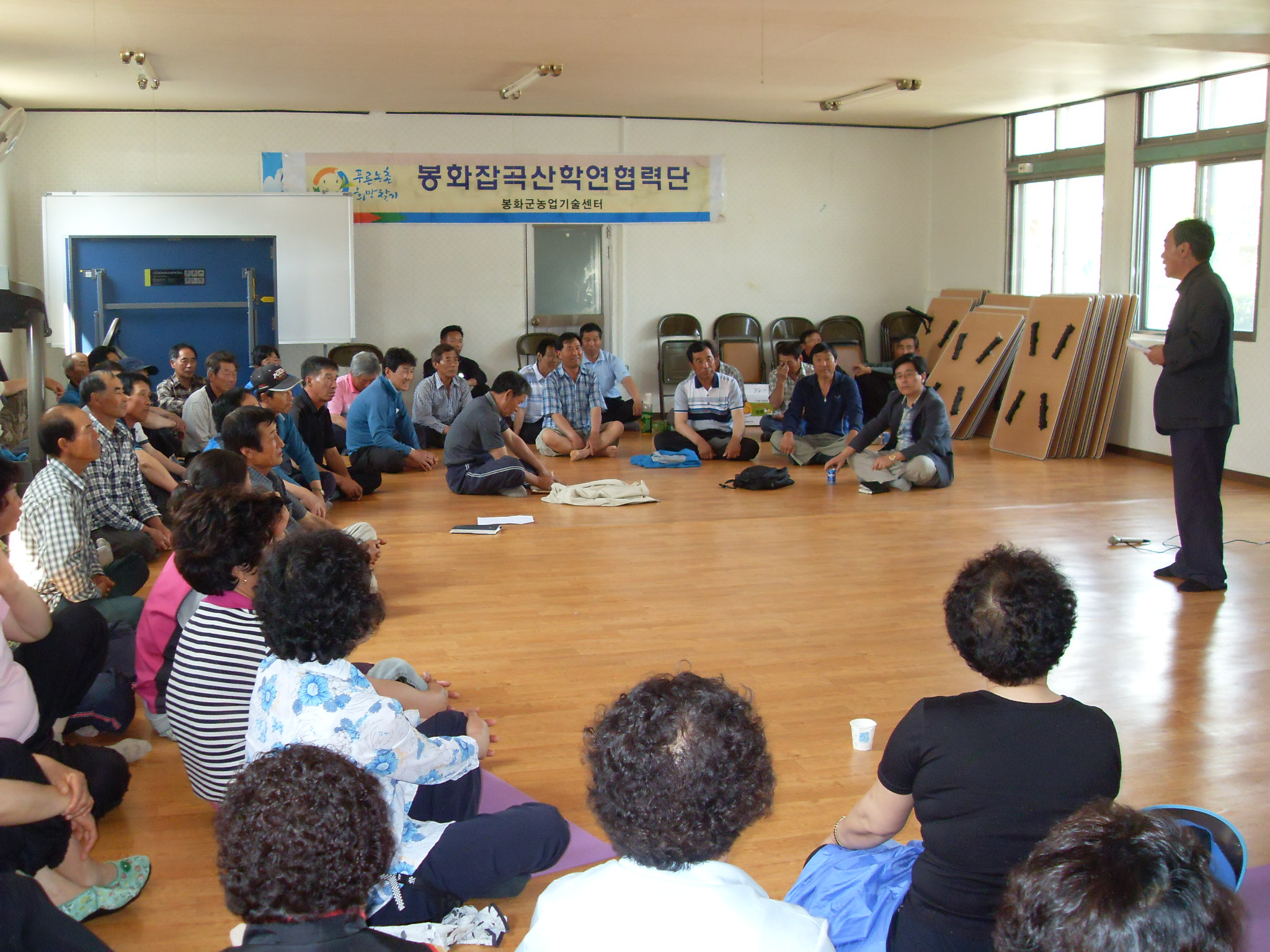 봉양리 마을 회관에서 웰빙잡곡 작목반과 마을 주민을 대상으로
