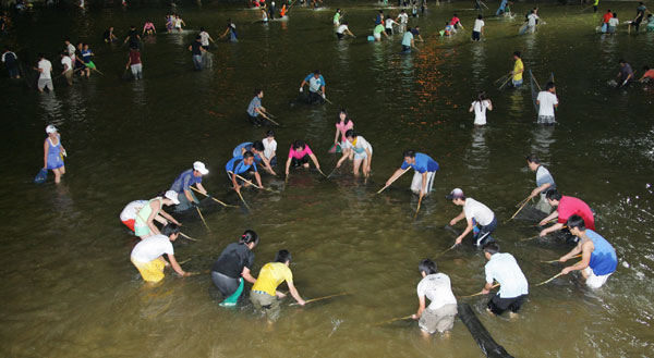 여러사람들이 함께 모여서 은어를 잡으면 고기도 더 잘 잡히고 재미도 2배입니다..