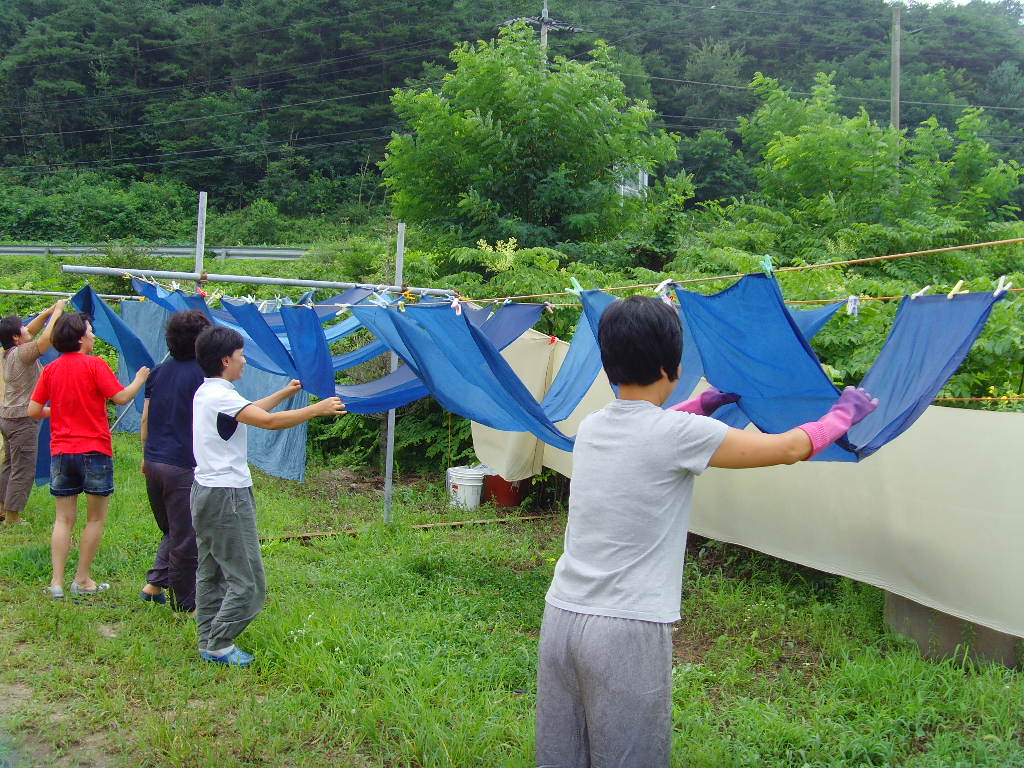 '쪽'이라는 식물에서 나오는 푸른 물인데요, 스카프로 만드니깐 목에도 좋고 더욱 시원한것 같습니다.
