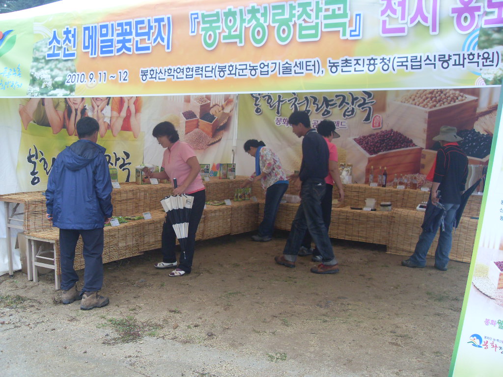 지난 9월 11일~12일 양일간 소천면 감전마을에서 메밀단지(60ha)에서 메밀상품 소개와 제품을 전시하여