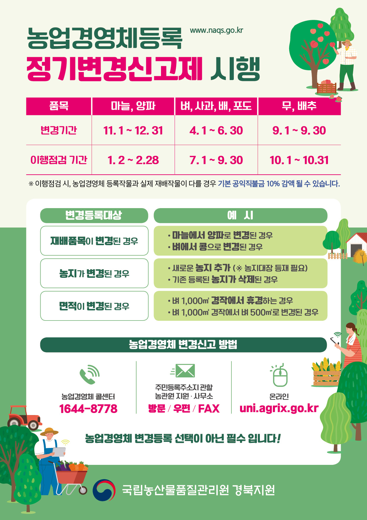 | 1278 | 농업경영체등록 정기변경신고제 안내 | 김민경 | 2025.08.11 |  | 164 |