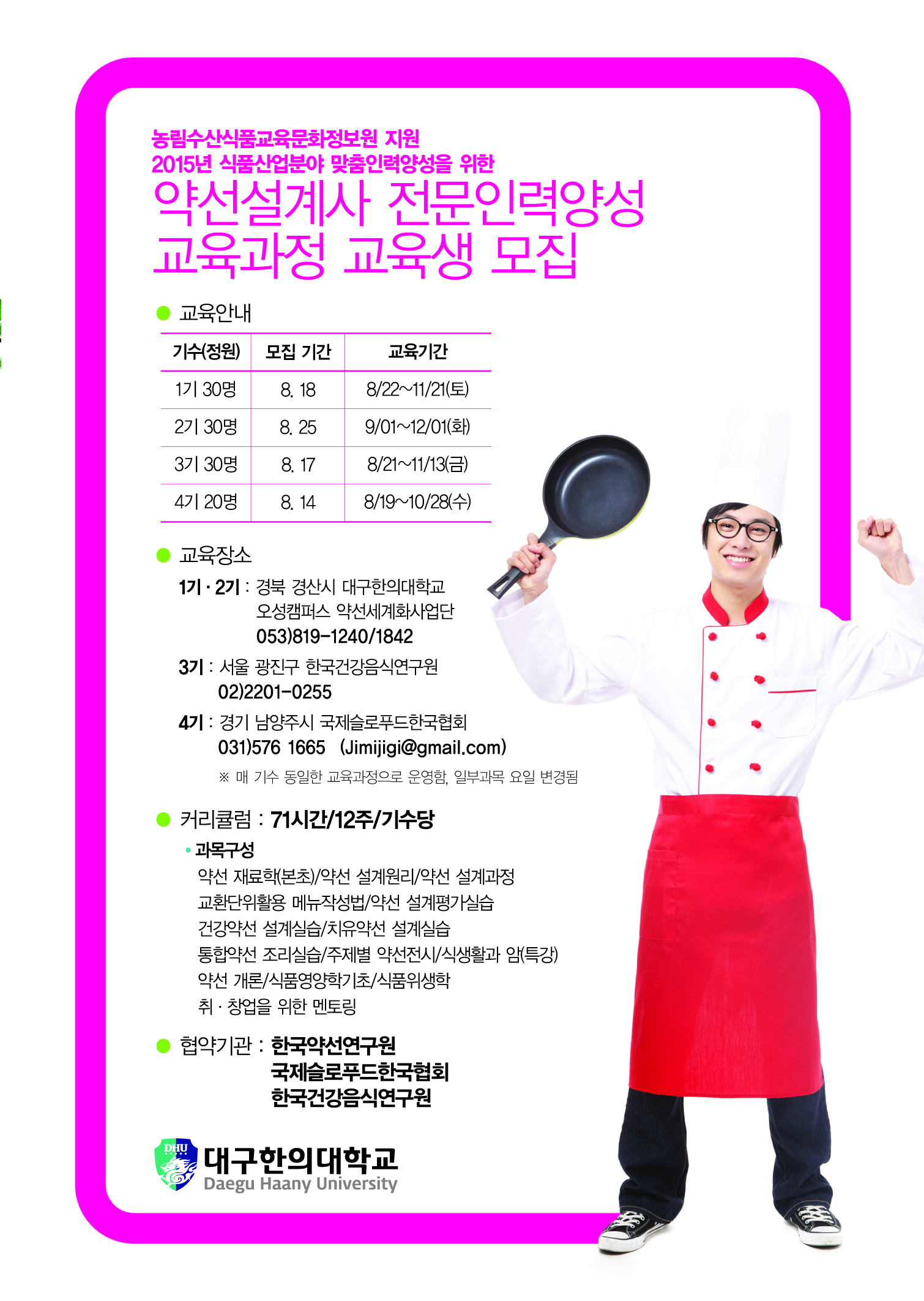 제목농림수산식품교육문화정보원 「약선설계사 전문인력 양성 교육」교육생 모집
