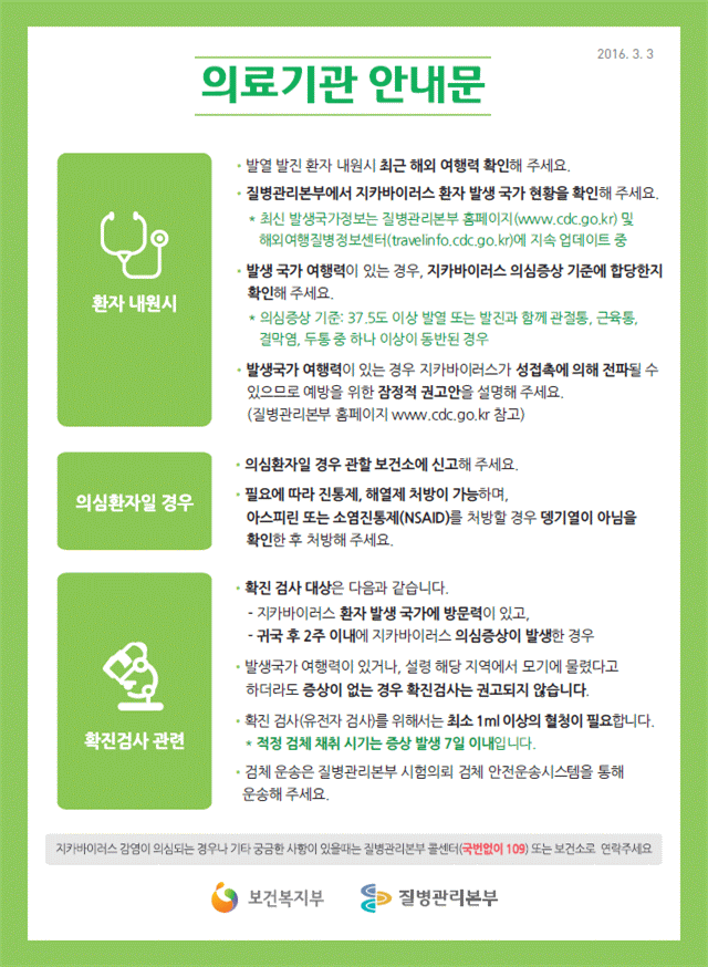 | 671 | 지카바이러스 발생국가 확대에 따른 감염 주의 당부 | 예방의약담당 | 2016.03.25 | ![]() ![]() ![]() ![]() | 3626 |