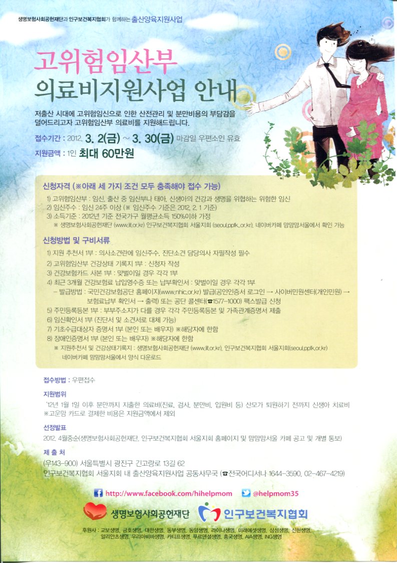 | 482 | 고위험임산부 의료비지원사업 안내 | 보건소 | 2012.02.28 | ![]() | 4396 |