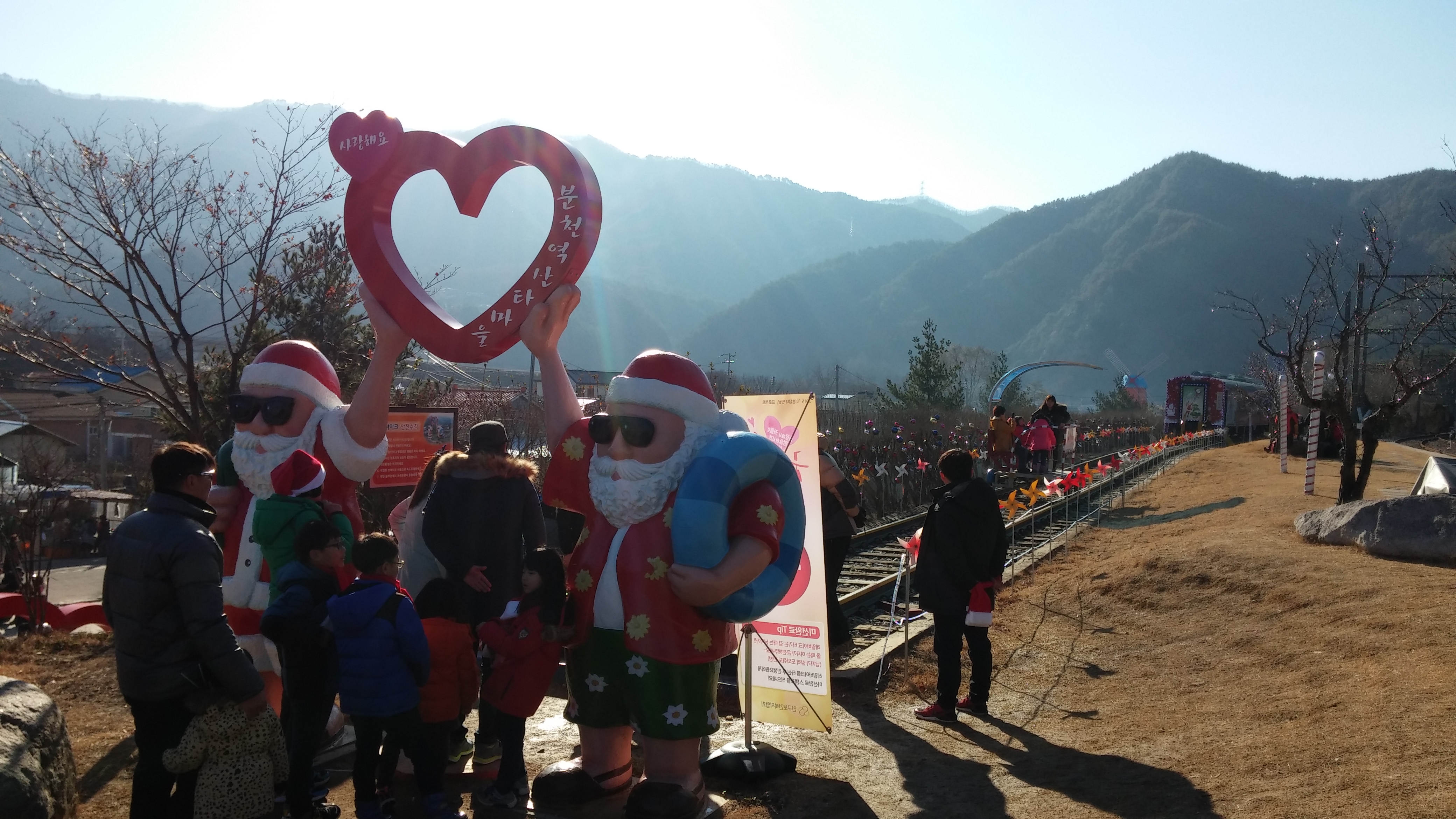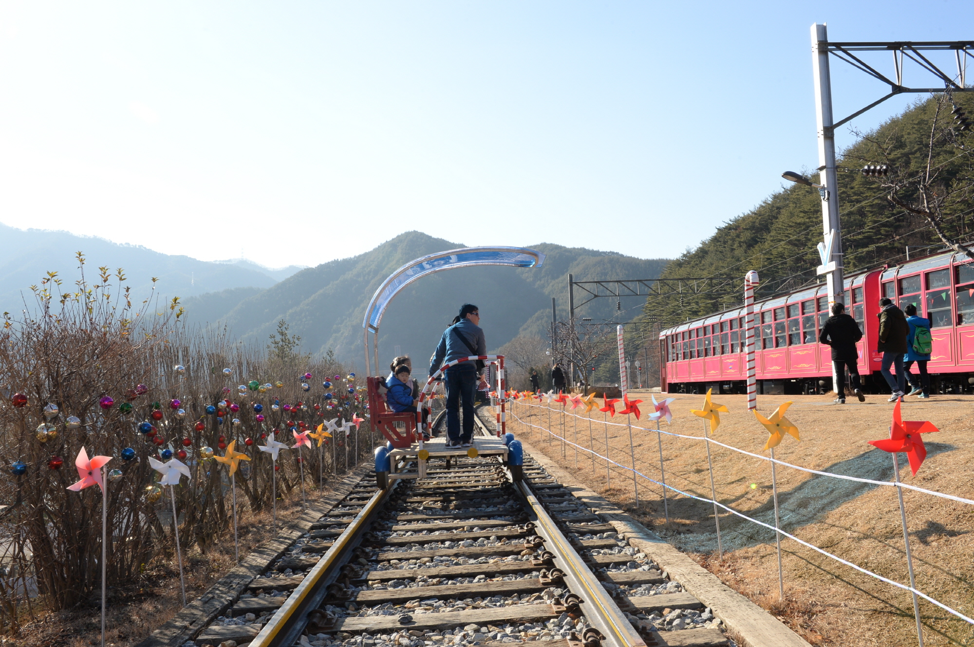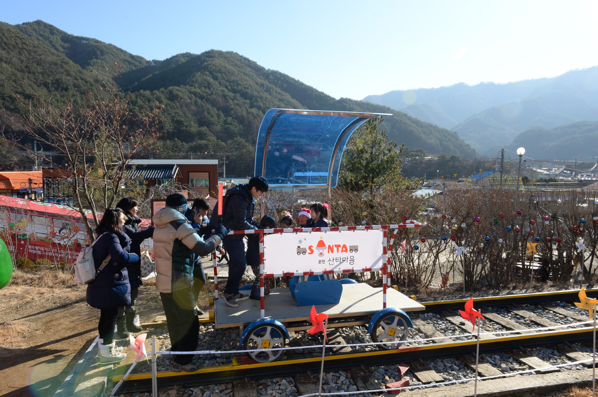 분천역 산타마을에 오시면 산타레일바이크를 타 보실 수 있어요.