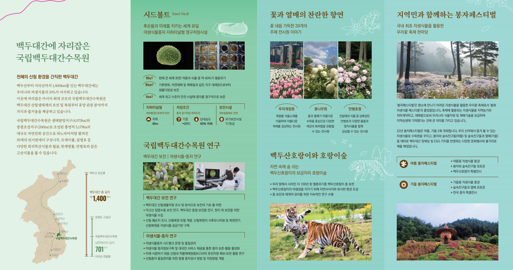 2. 국립백두대간수목원은 약 62만 평의 관람 면적에 39개의 주제정원으로 조성되어