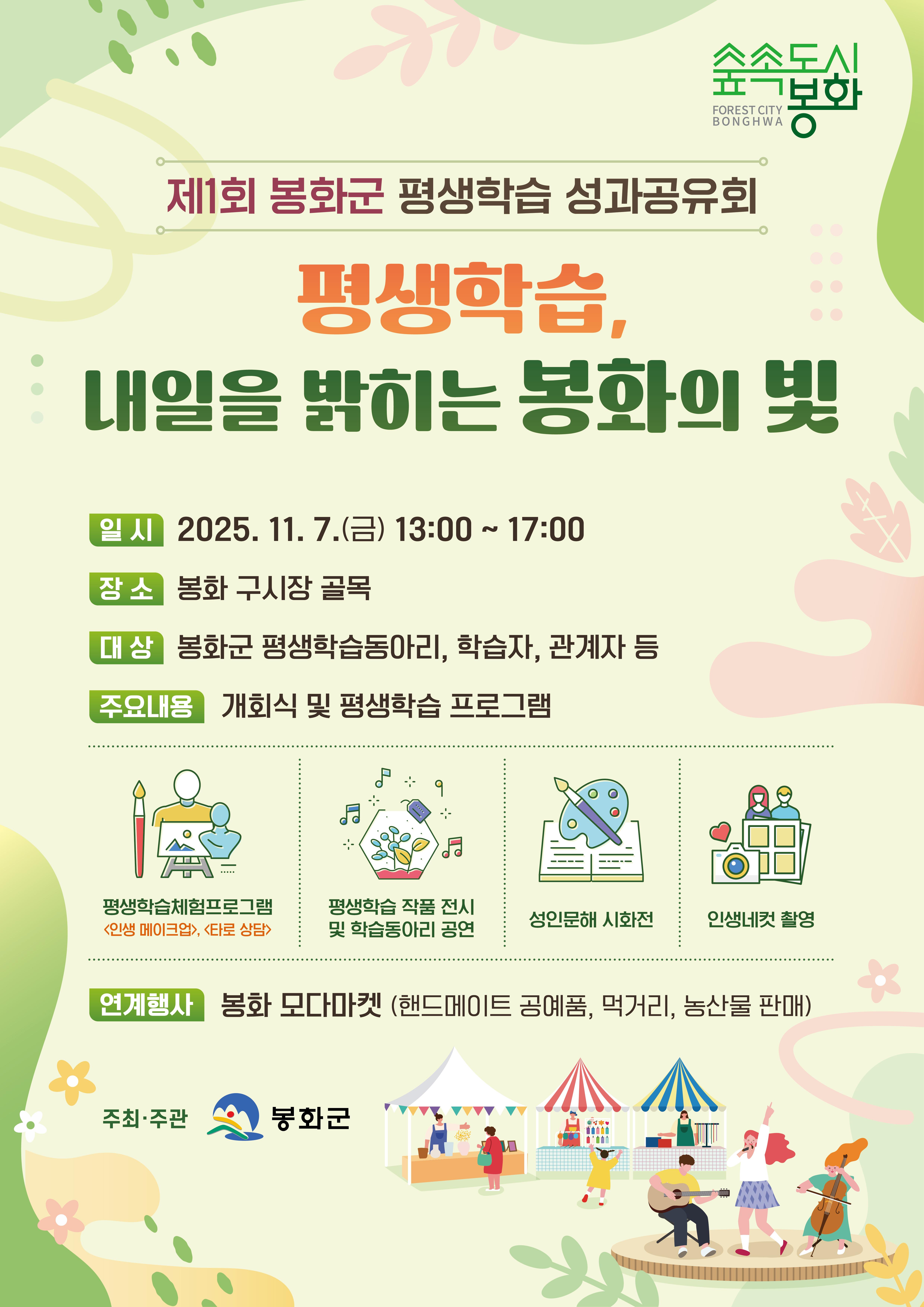 | 72 | 2025년 제1회 봉화군 평생학습 성과공유회 | 최고관리자 | 2025-10-21 | 33 | |