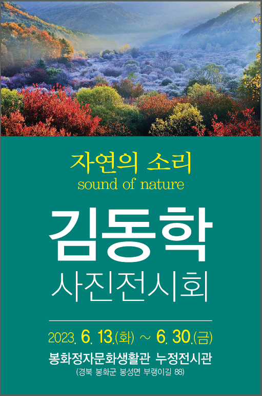 | 45 | 봉화정자문화생활관 김동학 사진전시회 '자연의 소리' 개최 | 체육시설사업소 | 2023.06.13 | ![]() |