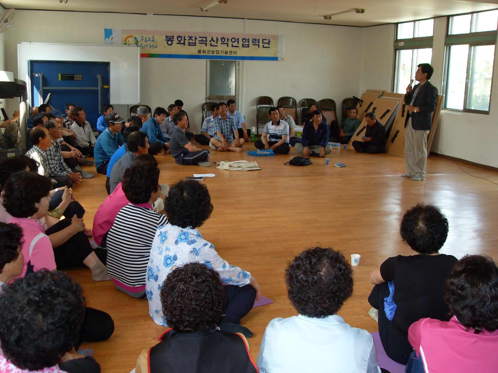 봉양리 마을 회관에서 웰빙잡곡 작목반과 마을 주민을 대상으로