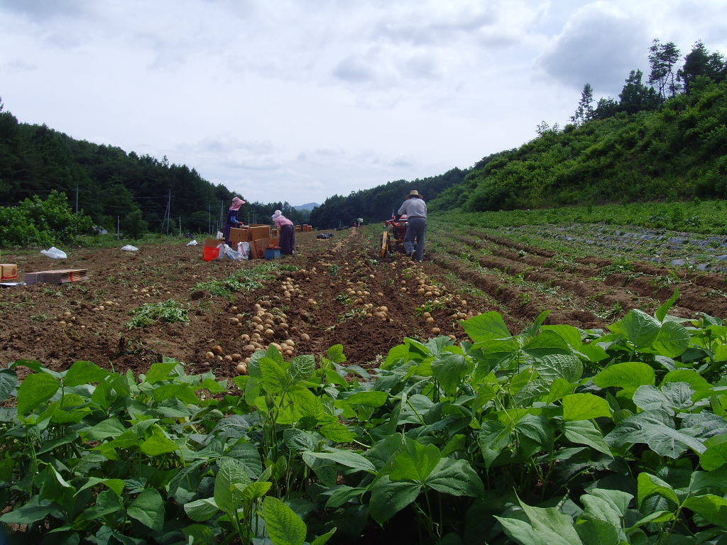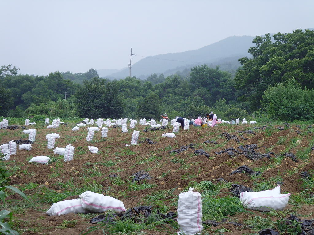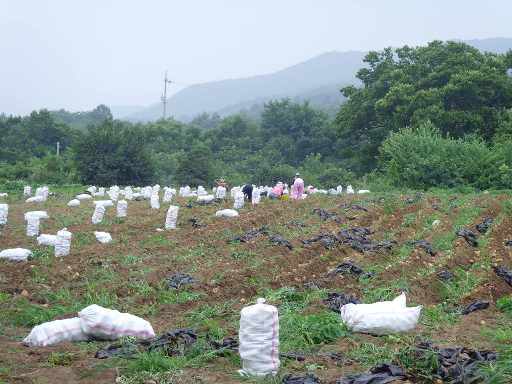 한창 감자캐기가 바쁜 농촌입니다.