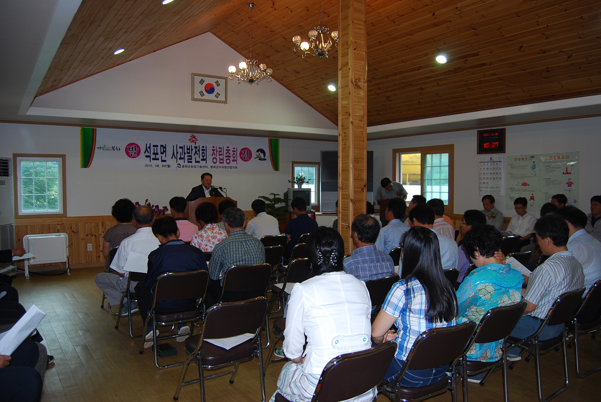 8월 30일 석포면 대현리 마을회관에서 '석포면 사과발전회'를 창립하였습니다. 이미 사과 재배면적 1,848ha로 전국적인 사과 주산지 입지를 굳히고 있는 봉화군은 고랭지 밀식 사과원 재배단지 조성으로 재배면적 확대는 물론 핵심 재배기술 보급과 농가 전문기술 향상에도 힘써 봉화사과의 우수성을 널리 알릴 계획입니다.
