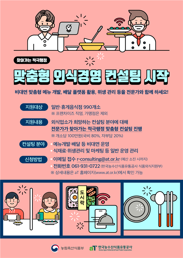 3. 내용 : 경영마케팅, 비대면 영업관리(메뉴개발 등) 등 컨설팅 비용 지원 100만원 한도(20%자부담)