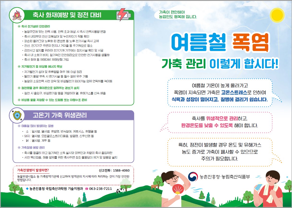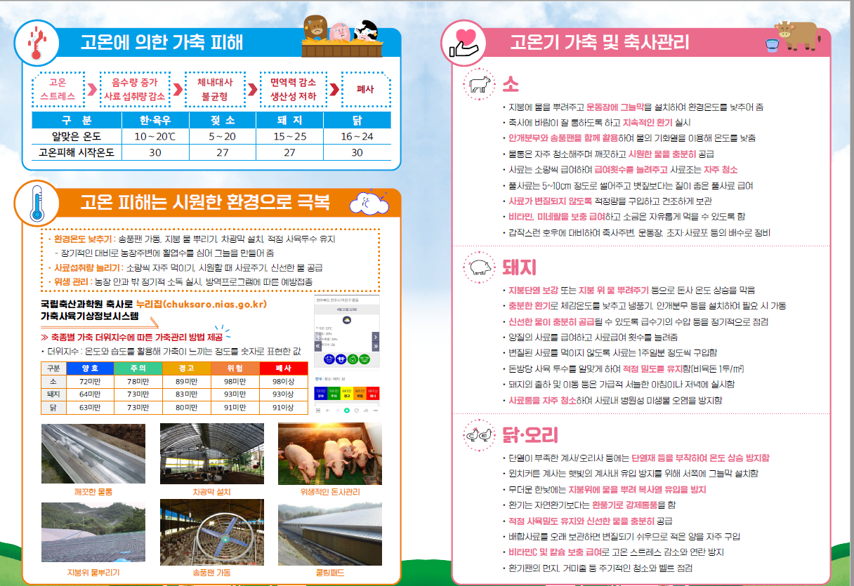 여름철 폭염 시 가축 관리방법 및 농업인 안전재해예방 행동요령 자료입니다.