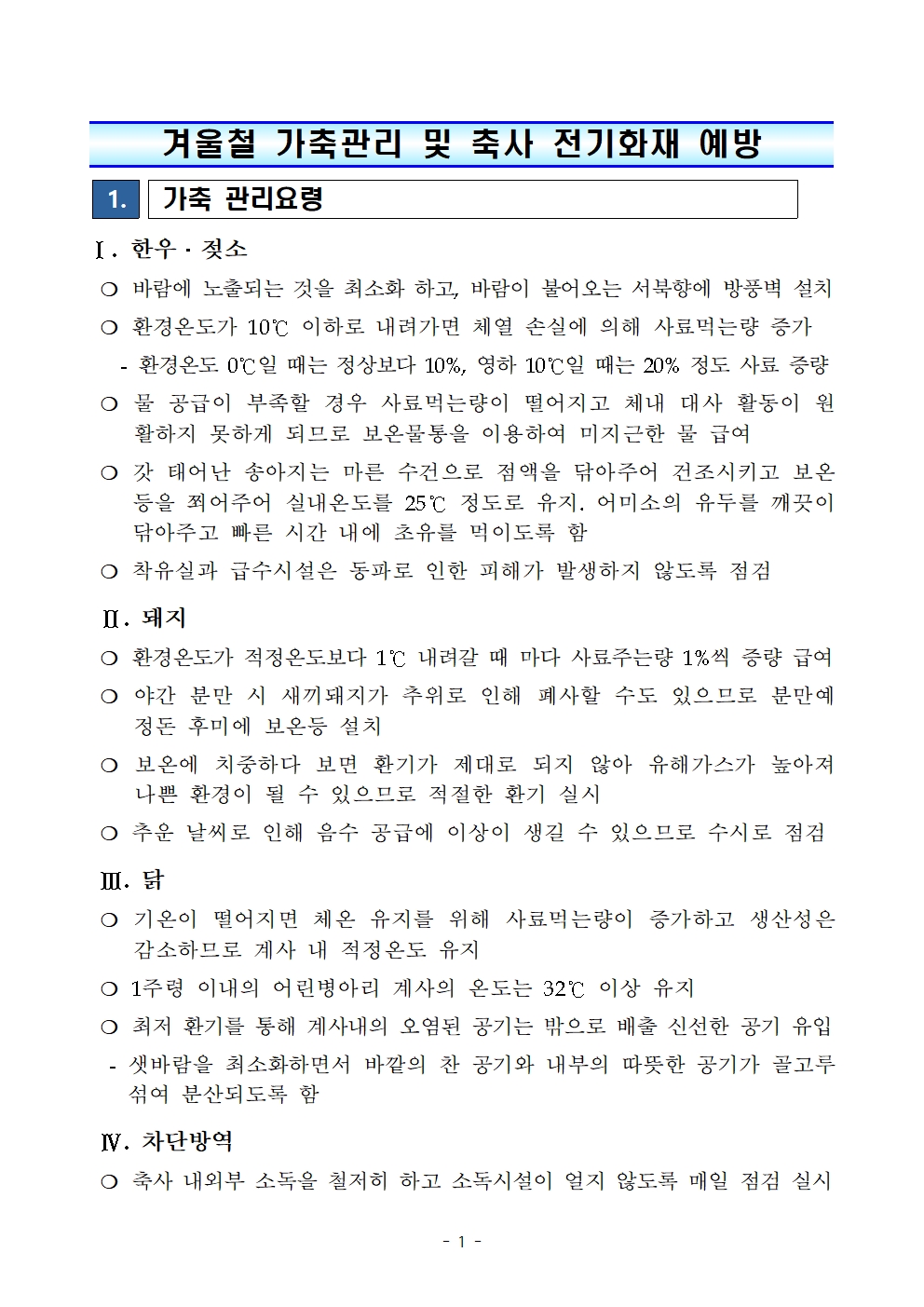 | 967 | 겨울철 가축관리 및 축사 전기화재 예방 | 송지웅 | 2022.11.30 | ![]() ![]() ![]() | 709 |