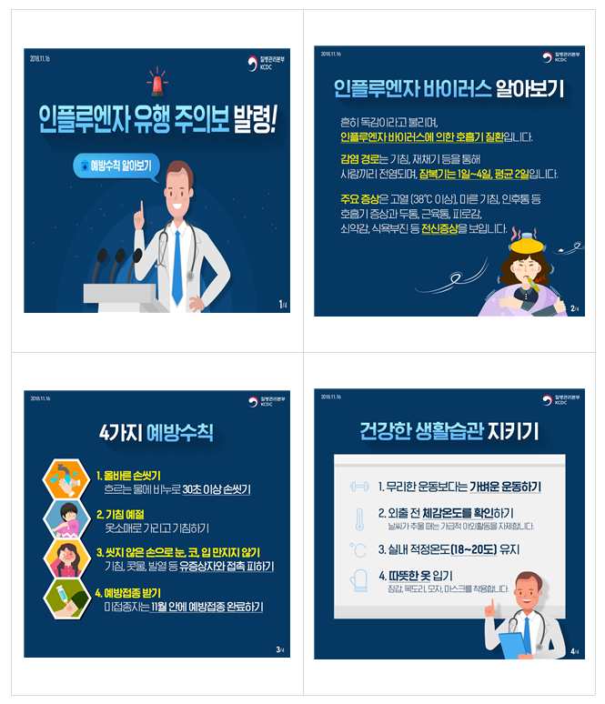 | 29 | 2018년 인플루엔자 유행주의보 발령 | 박세주 | 2018.11.19 | ![]() | 987 |