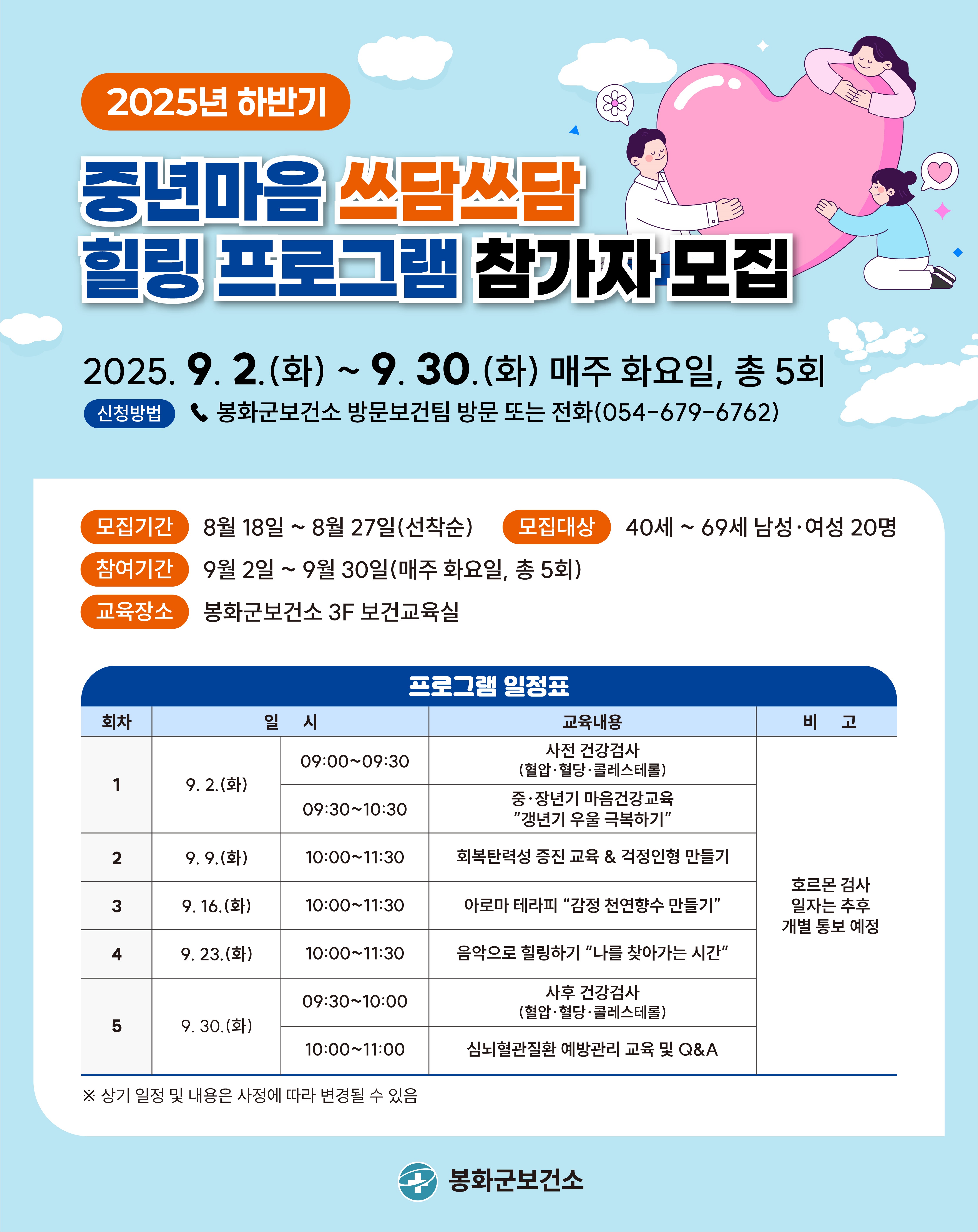 2025년 하반기 "중년마음 쓰담쓰담 힐링프로그램" 참가자 모집