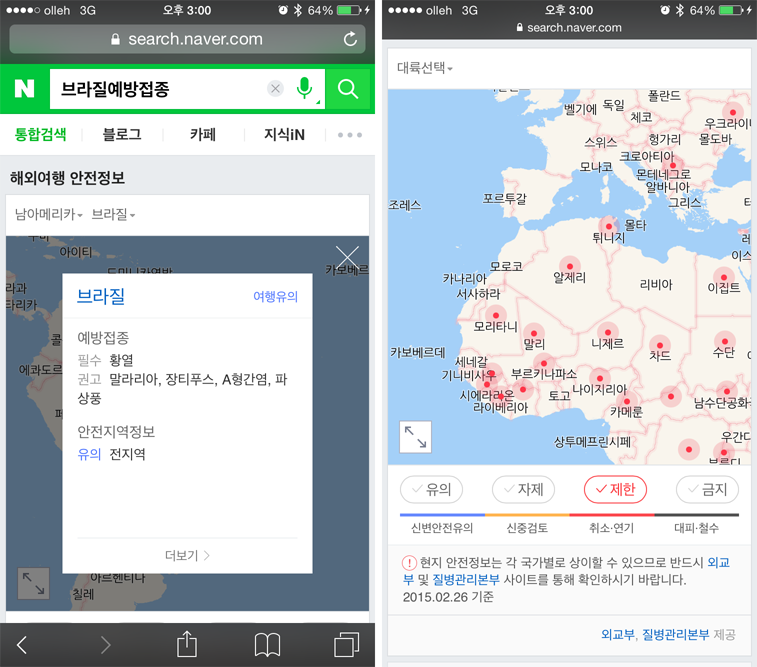 | 606 | 해외여행 국가별 예방접종, 검색포털서비스 연계 정보 제공 | 보건소 | 2015.03.03 | ![]() | 2900 |