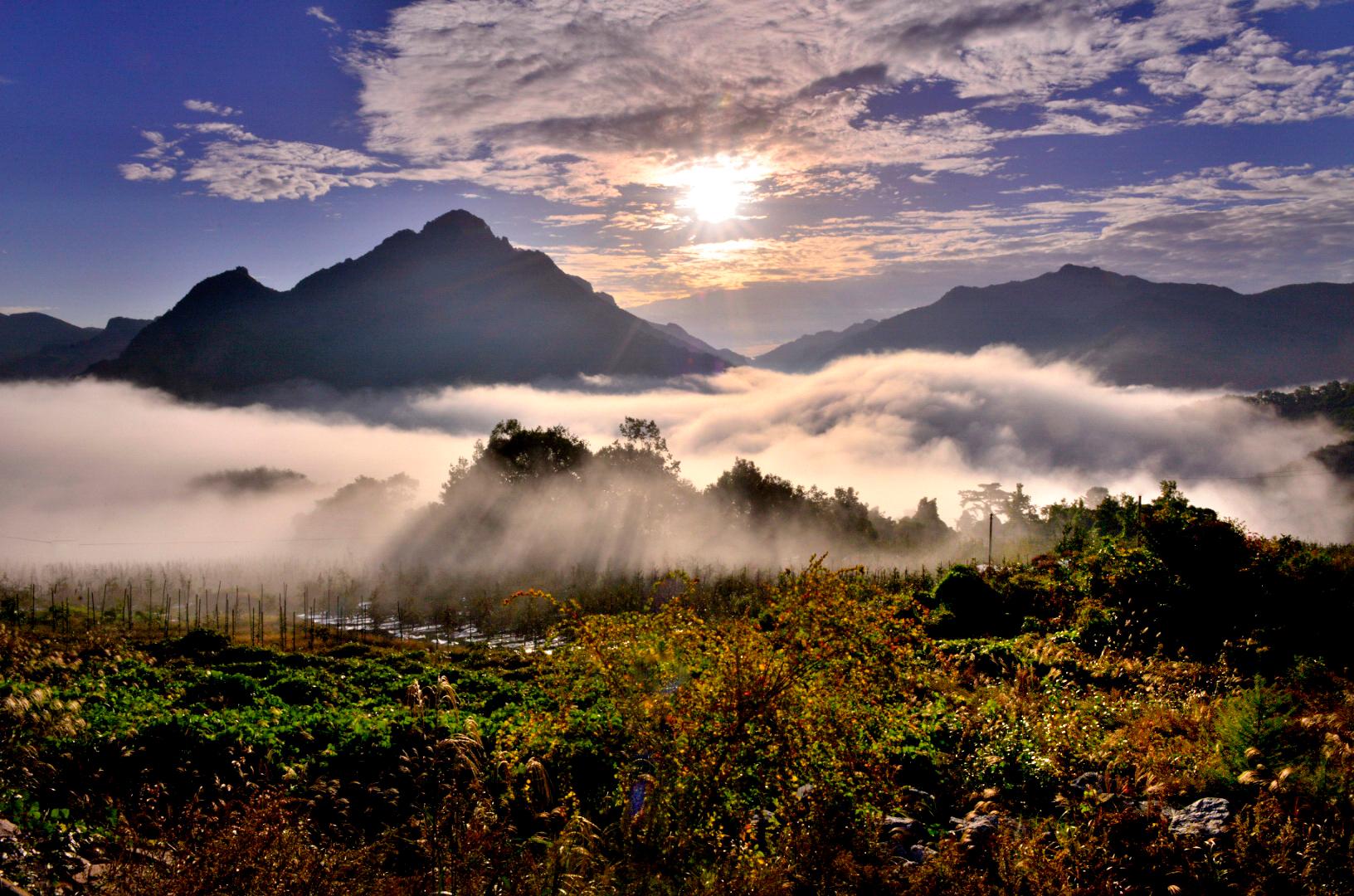 제7회 봉화관광 전국사진 공모전 수상작인 이을순 작가의 운해가 스나미처럼 밀려온다입니다.