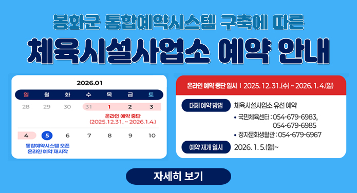 - 봉화군 통합예약시스템 구축에 따른 체육시설사업소 예약 안내