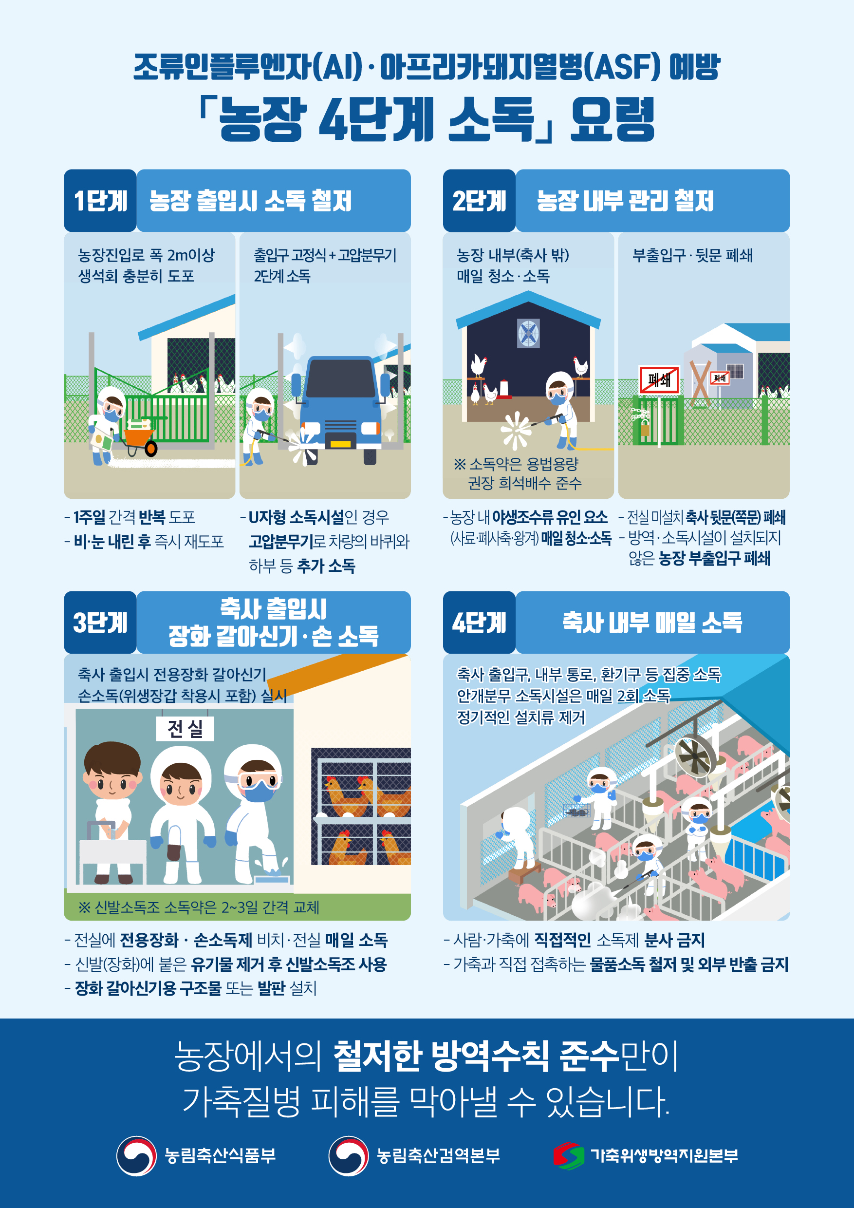 관내 양돈농장에서는 울타리 점검, 농장 내외부 철저소독, 불필요한 외부접촉자제 등 방역관리에 철저를 기해 주시길 바랍니다.