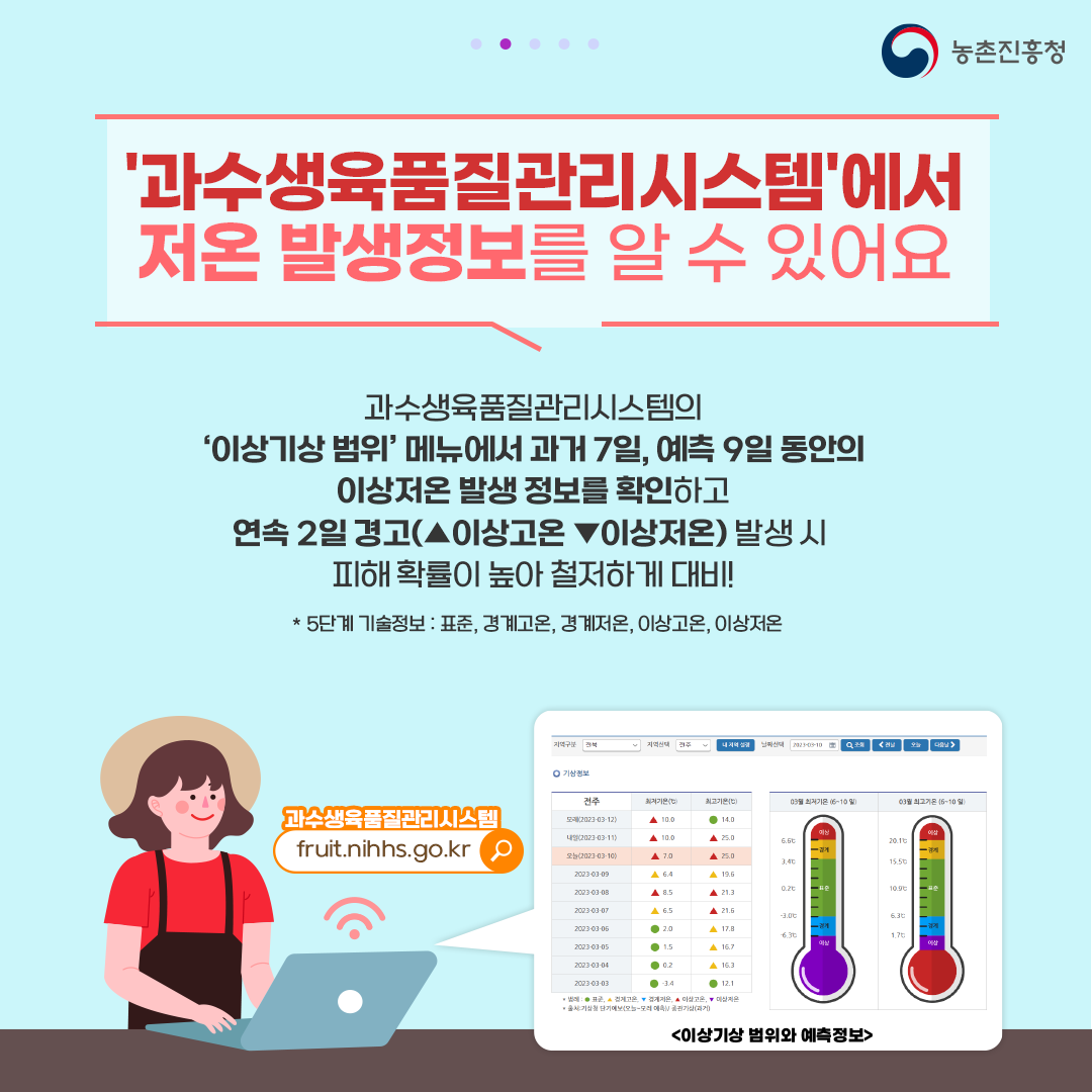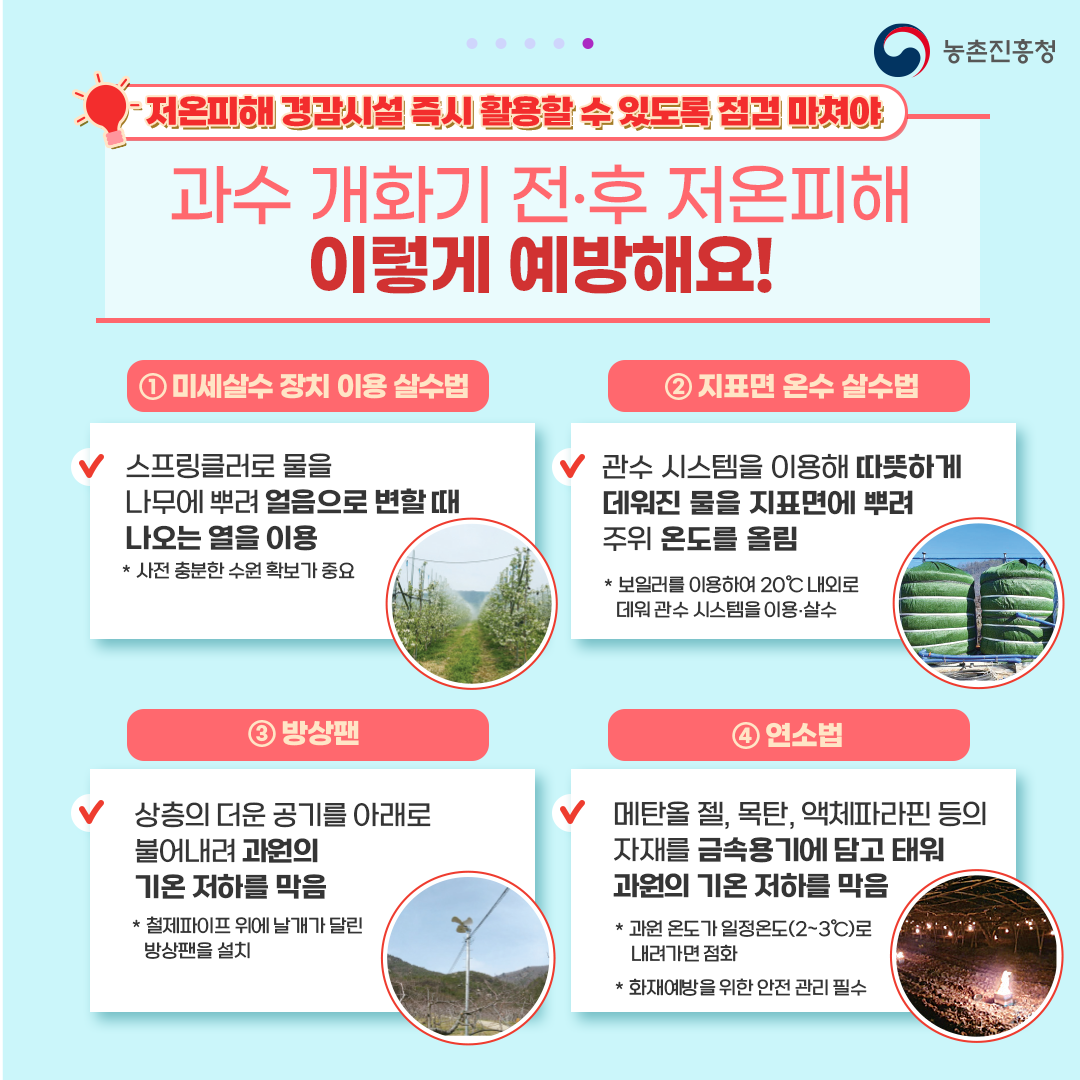 | 1106 | 과수 저온피해 예방 대책 안내 | 송대익 | 2024.03.28 | ![]() ![]() ![]() ![]() ![]() ![]() ![]() | 132 |