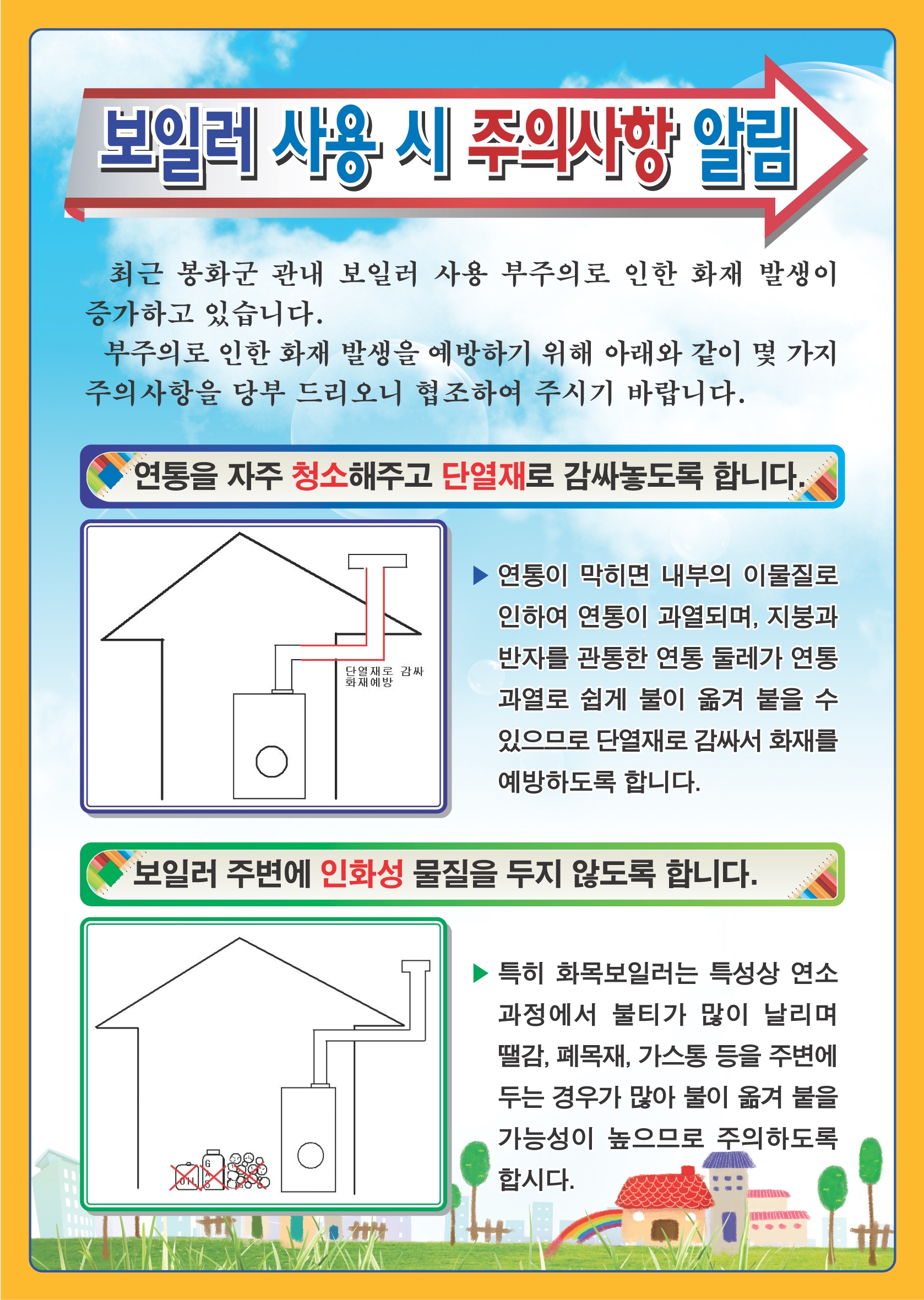 | 201 | 화목보일러 화재예방 주의사항 안내 | 법전면 | 2015.02.13 | ![]() ![]() | 1152 |