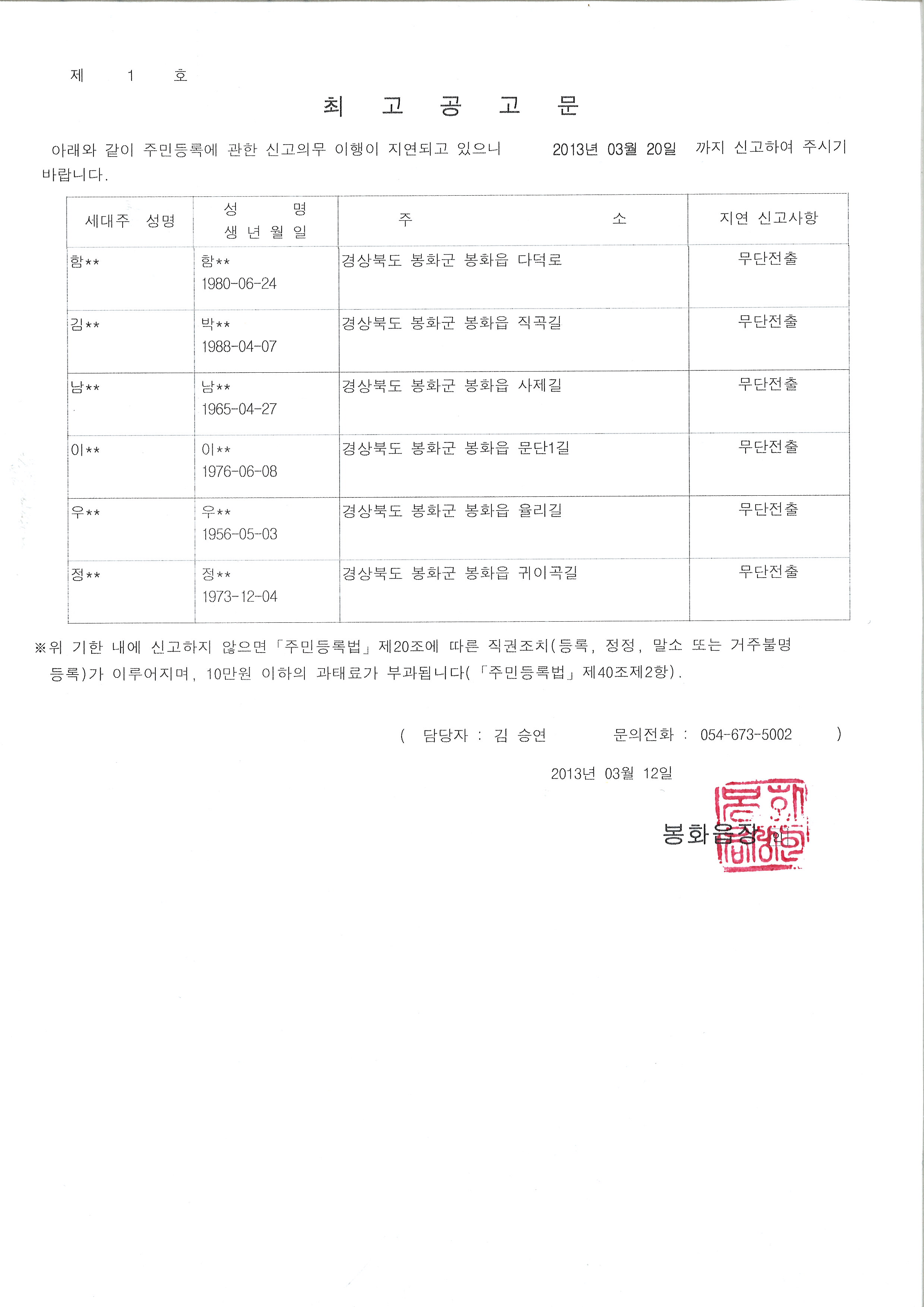 본 페이지의 관리부서는 봉화읍 총무팀 (☎054-679-5013)입니다.최종수정일 : 2024.10.28