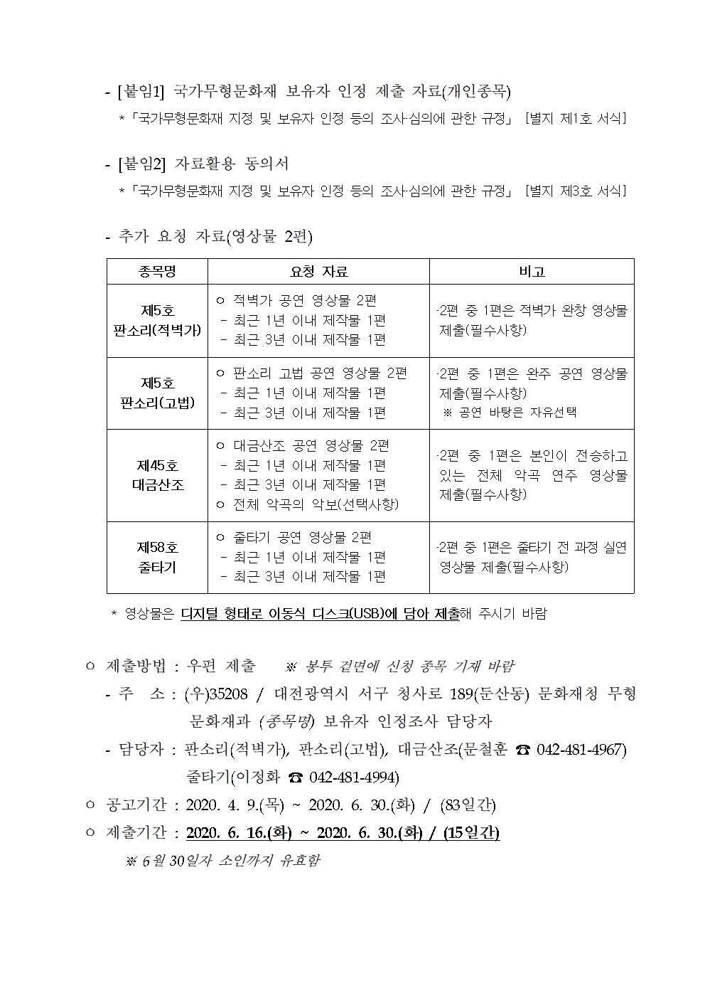 ㅇ 제출기간 : 2020. 6. 16.(화) ~ 2020. 6. 30.(화) / (15일간)