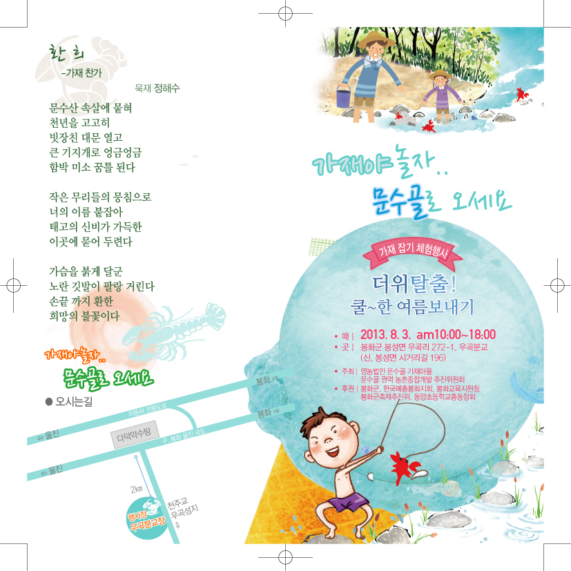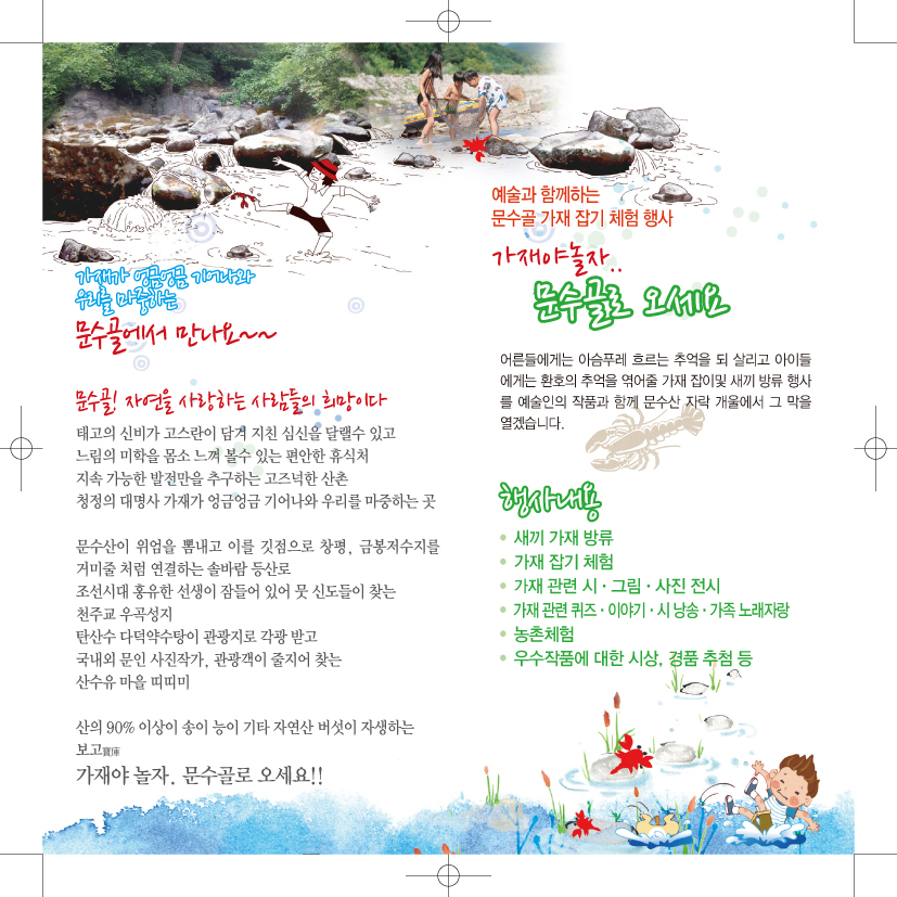 | 104 | 가재야 놀자... 문수골로 오세요~!!!(가재잡기체험행사) | 봉성면 | 2013.07.25 | ![]() ![]() | 2569 |