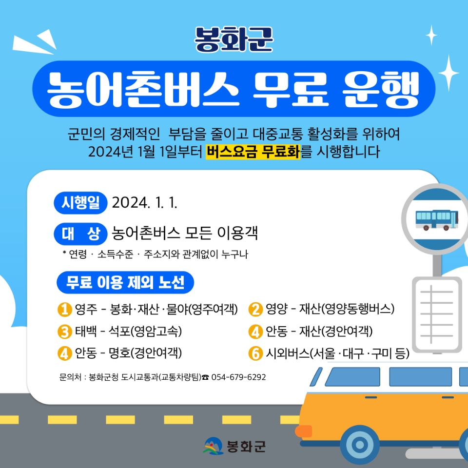 ▶ 무료노선제외 ①영주-봉화/재산/물야 ②영양-재산(영양동행버스) ③태백-석포(영암고속) ④안동-재산(경안여객) ⑤안동-명호(경안여객) ⑥시외버스(서울/대구/구미 등)