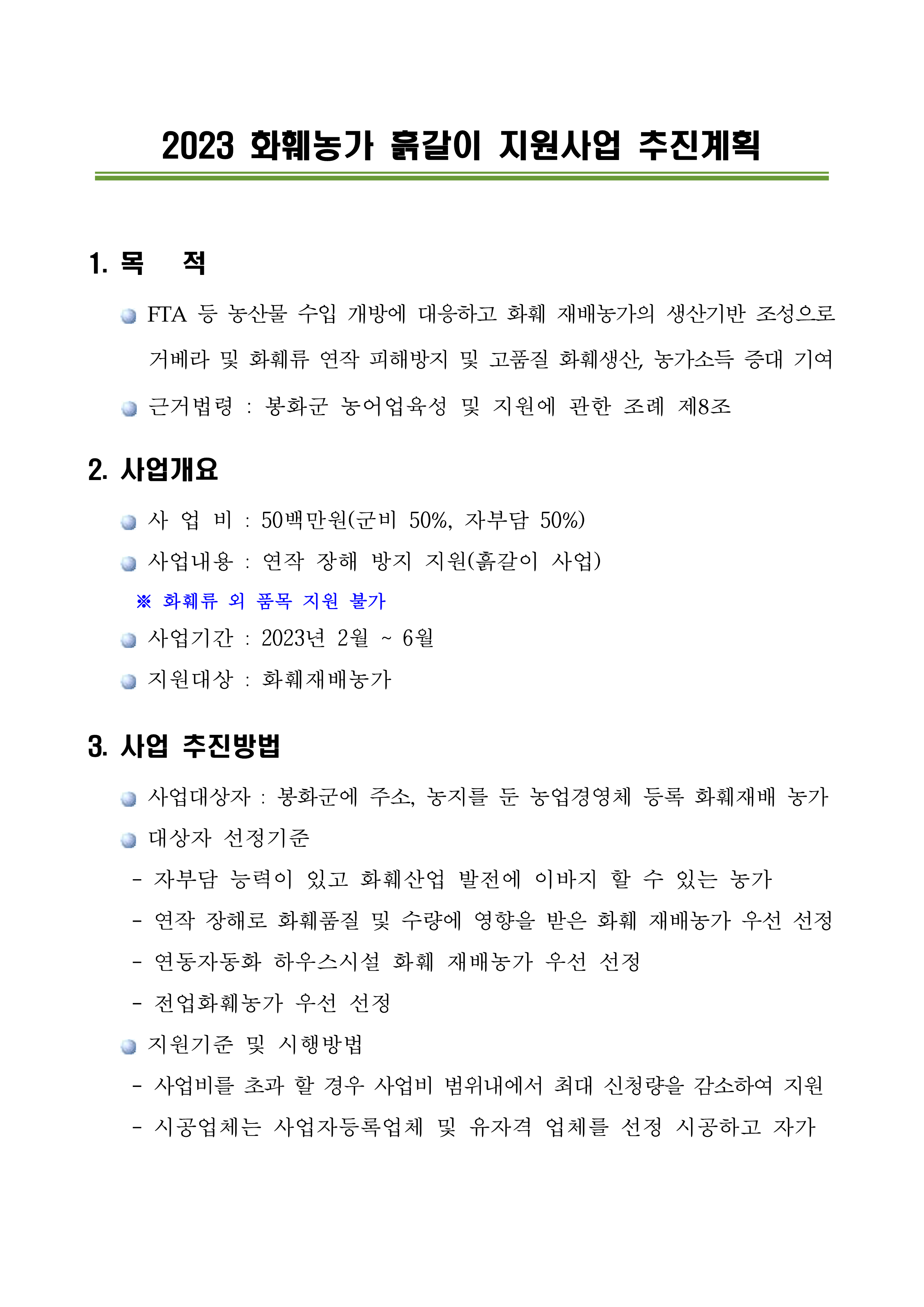 2023년 화훼농가 흙갈이 지원사업을 다음과 같이 추진하오니