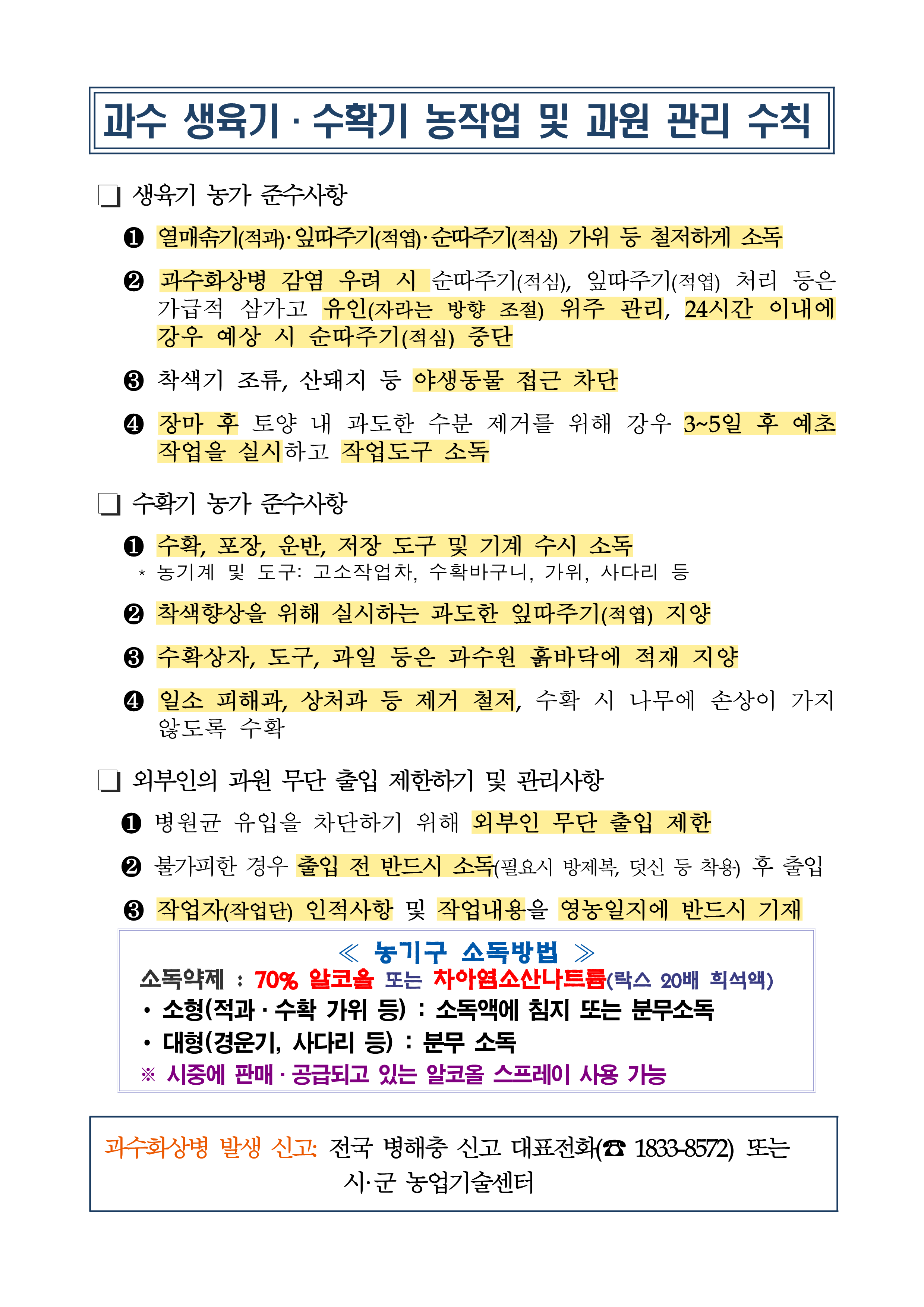 과수 생육기 수확기 농작업 및 과원 관리 수칙