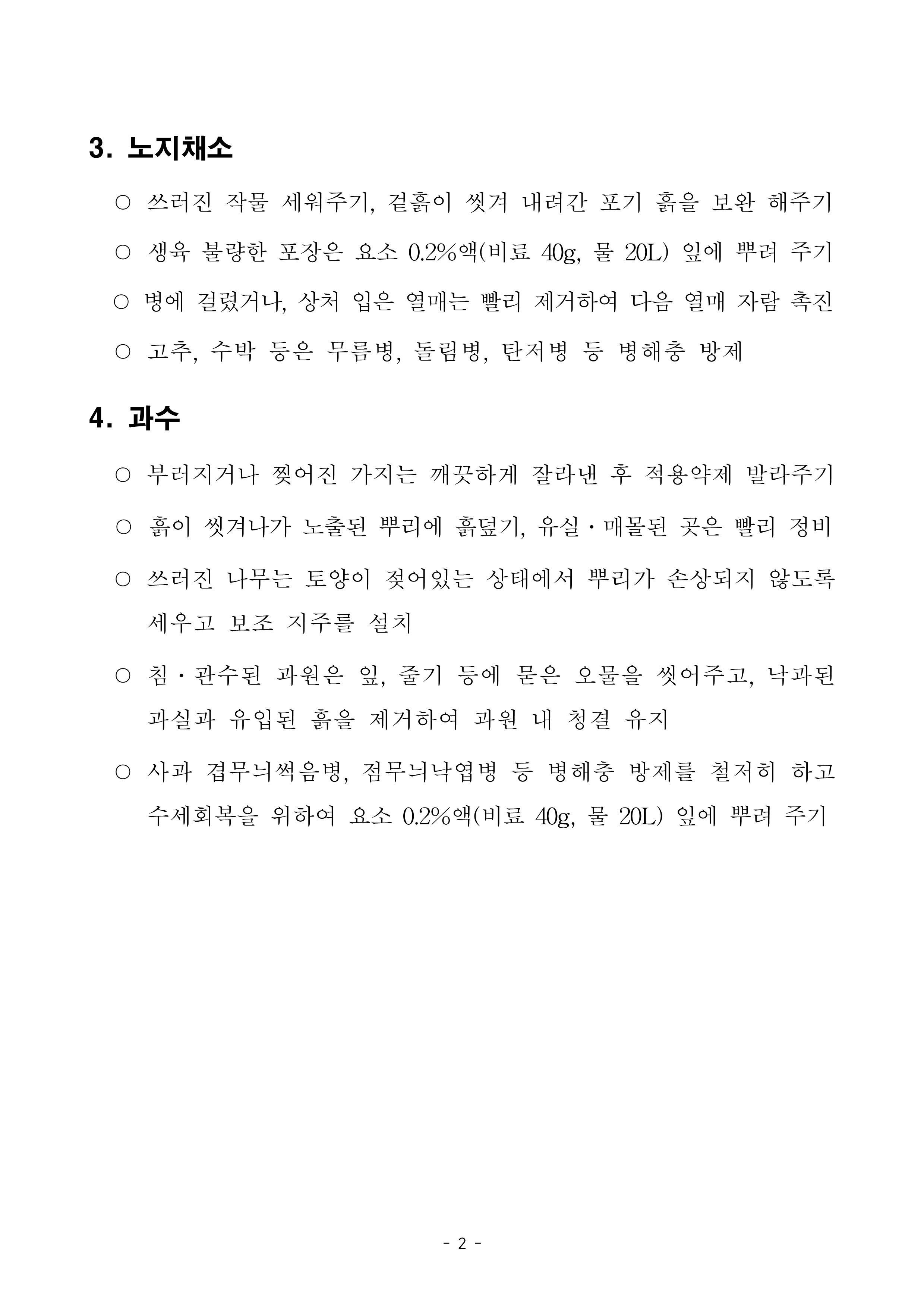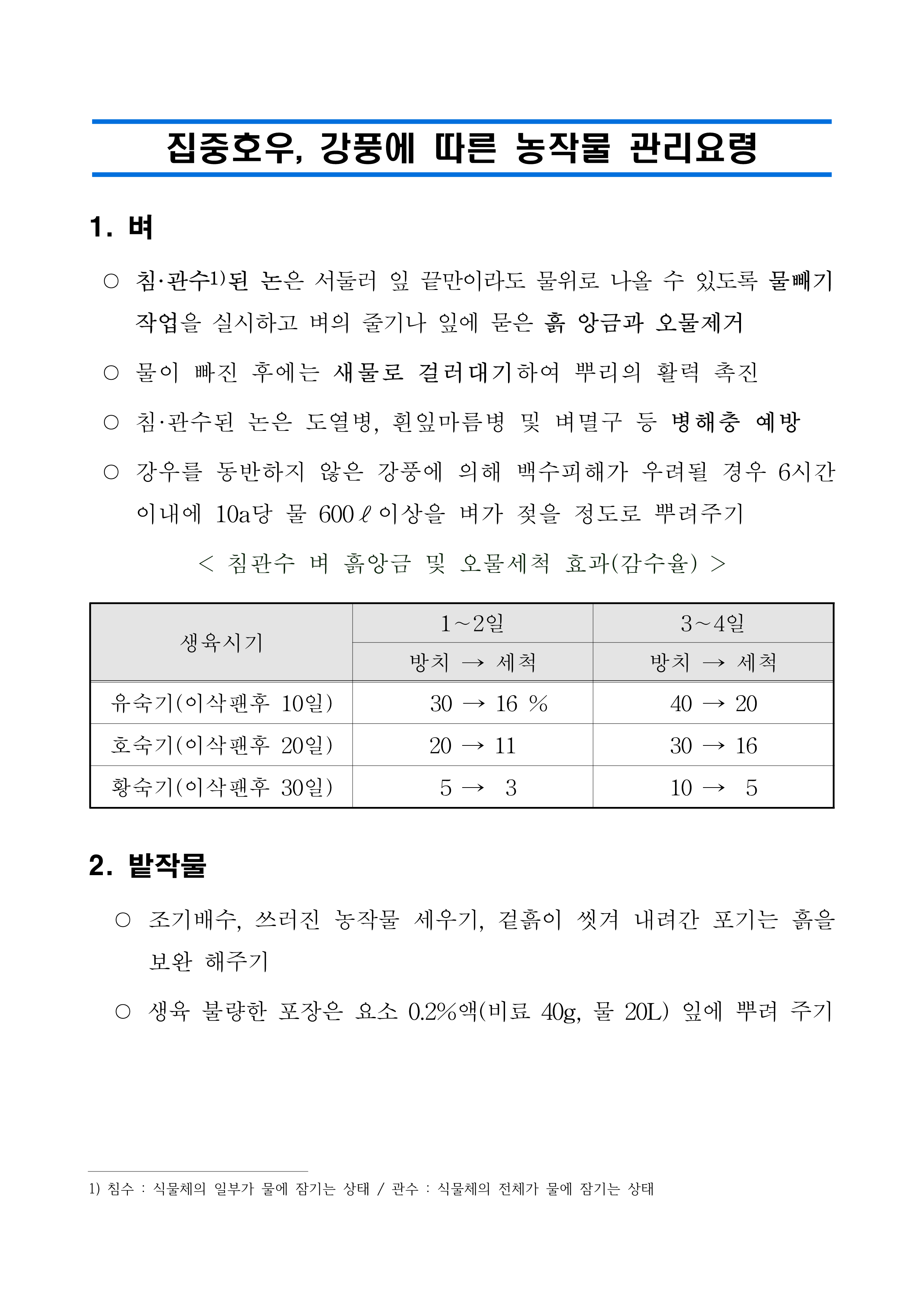 집중호우, 강풍에 따른 농작물 관리요령