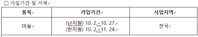 2023년 농작물재해보험 "마늘(수입보장포함)" 품목의 가입기간을 알려드립니다.