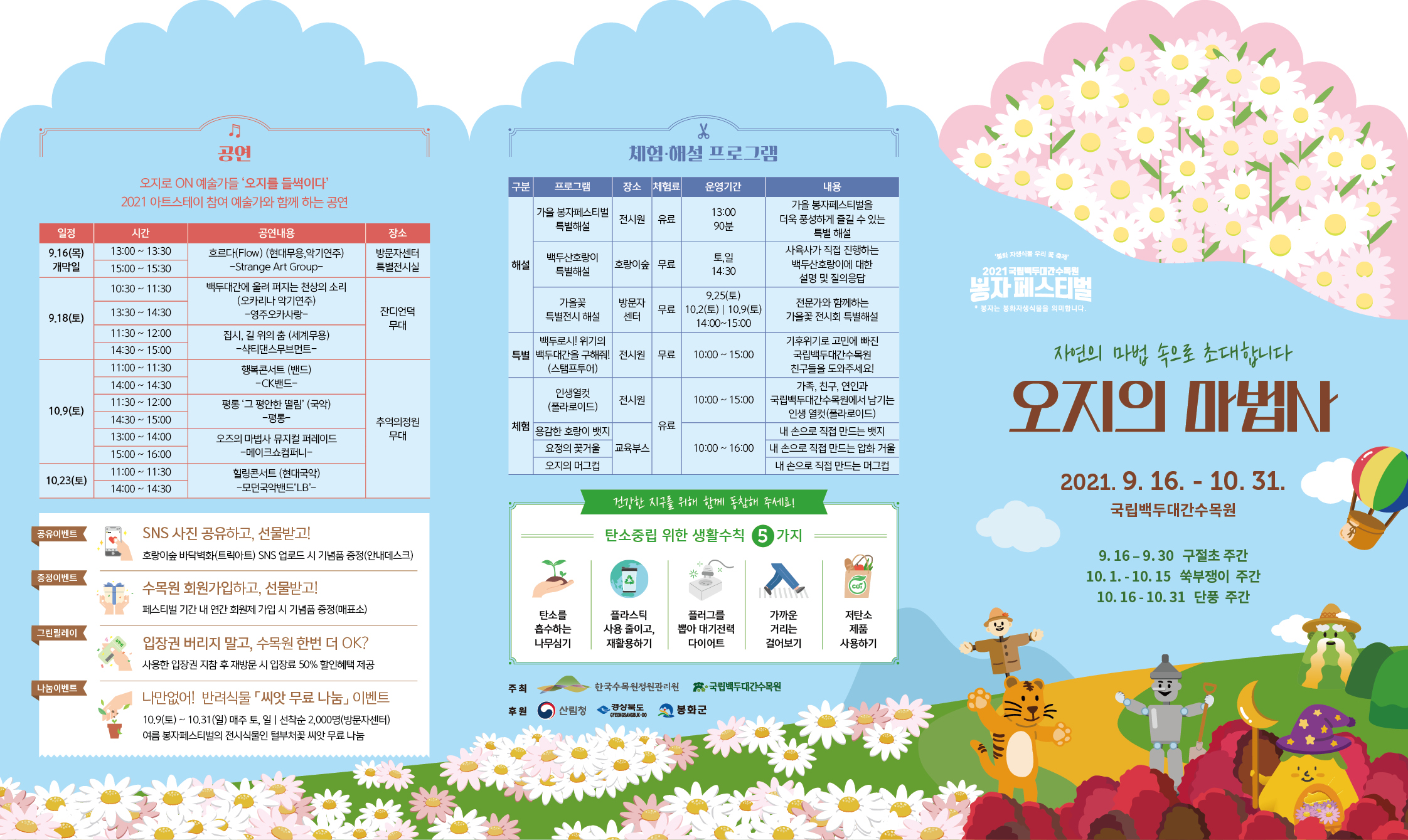 | 794 | 2021년 국립백두대간수목원 가을 봉자페스티벌 개최 | 김서윤 | 2021.09.09 | ![]() ![]() ![]()  | 197 |
