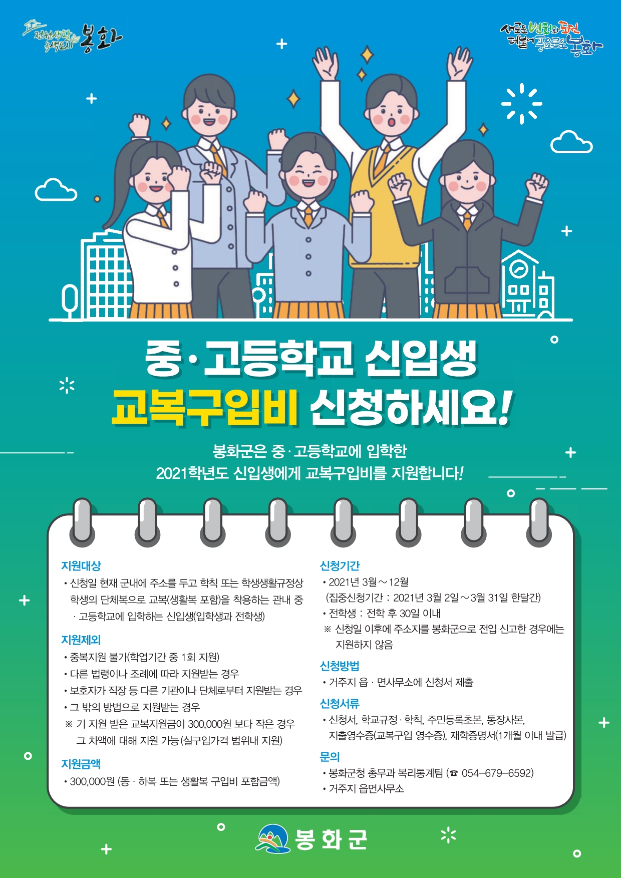 | 588 | 2021년도 봉화군 교복지원 사업 안내 | 권현목 | 2021.02.04 | ![]() ![]() ![]() | 223 |