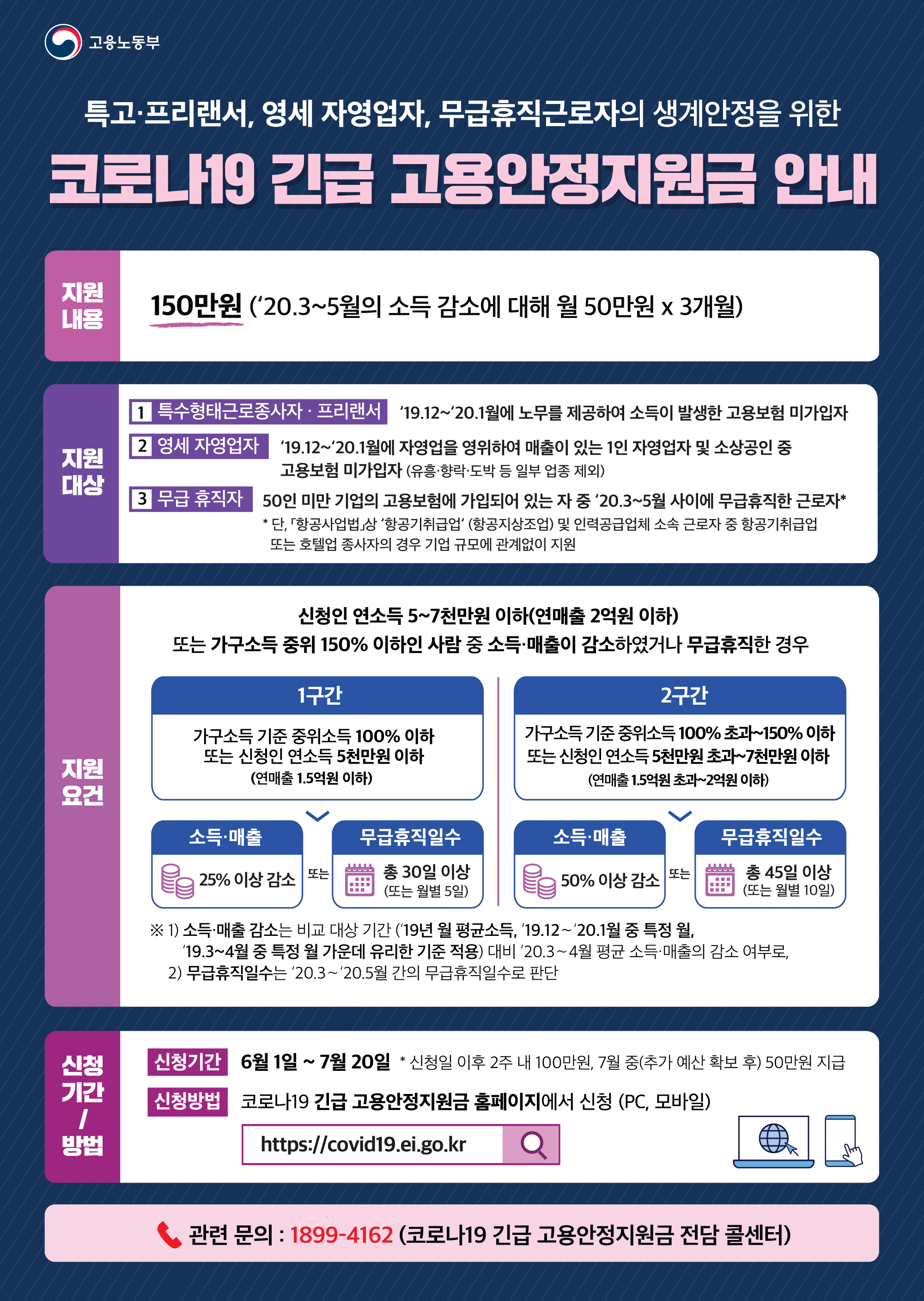 | 472 | 고용노동부 코로나19 긴급 고용안정자금 사업 시행 안내 | 김미나 | 2020.06.19 | ![]() ![]() ![]() | 207 |