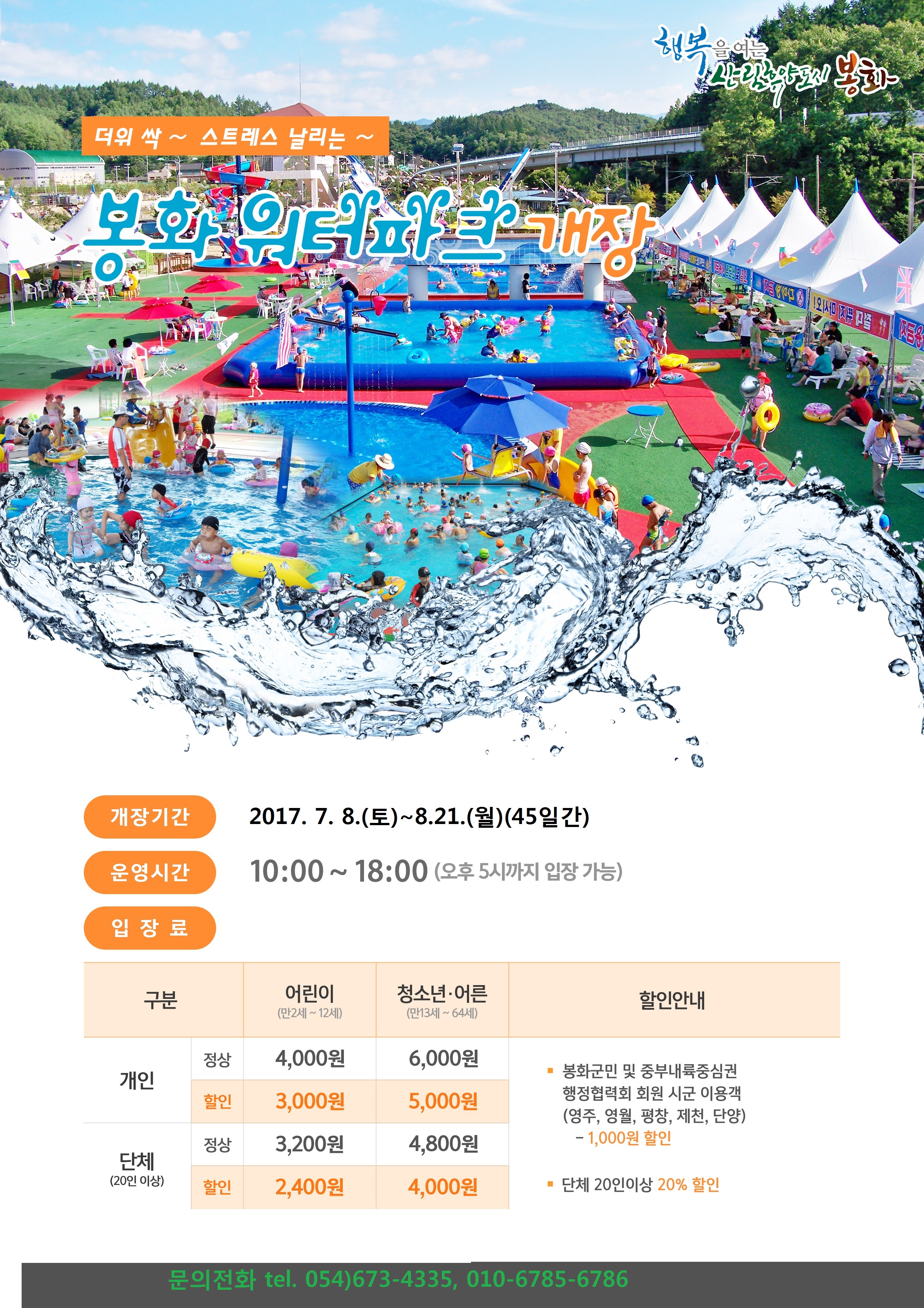| 264 | 파인토피아봉화 워터파크 개장 안내 | 이민수 | 2017.07.03 | ![]() | 861 |