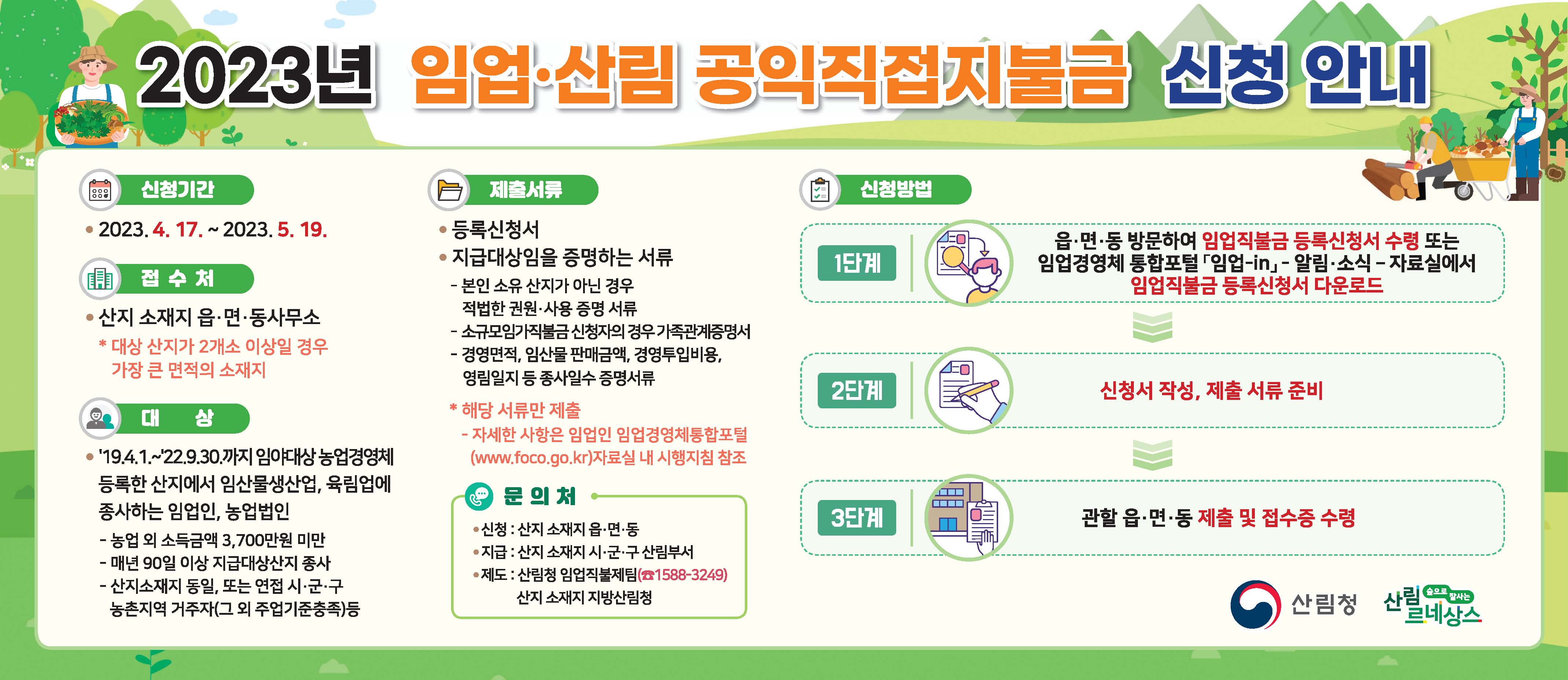 | 894 | 2023년도 임업ㆍ산림 공익직접지불금 등록신청 공고 | 정유민 | 2023.04.11 |    | 143 |