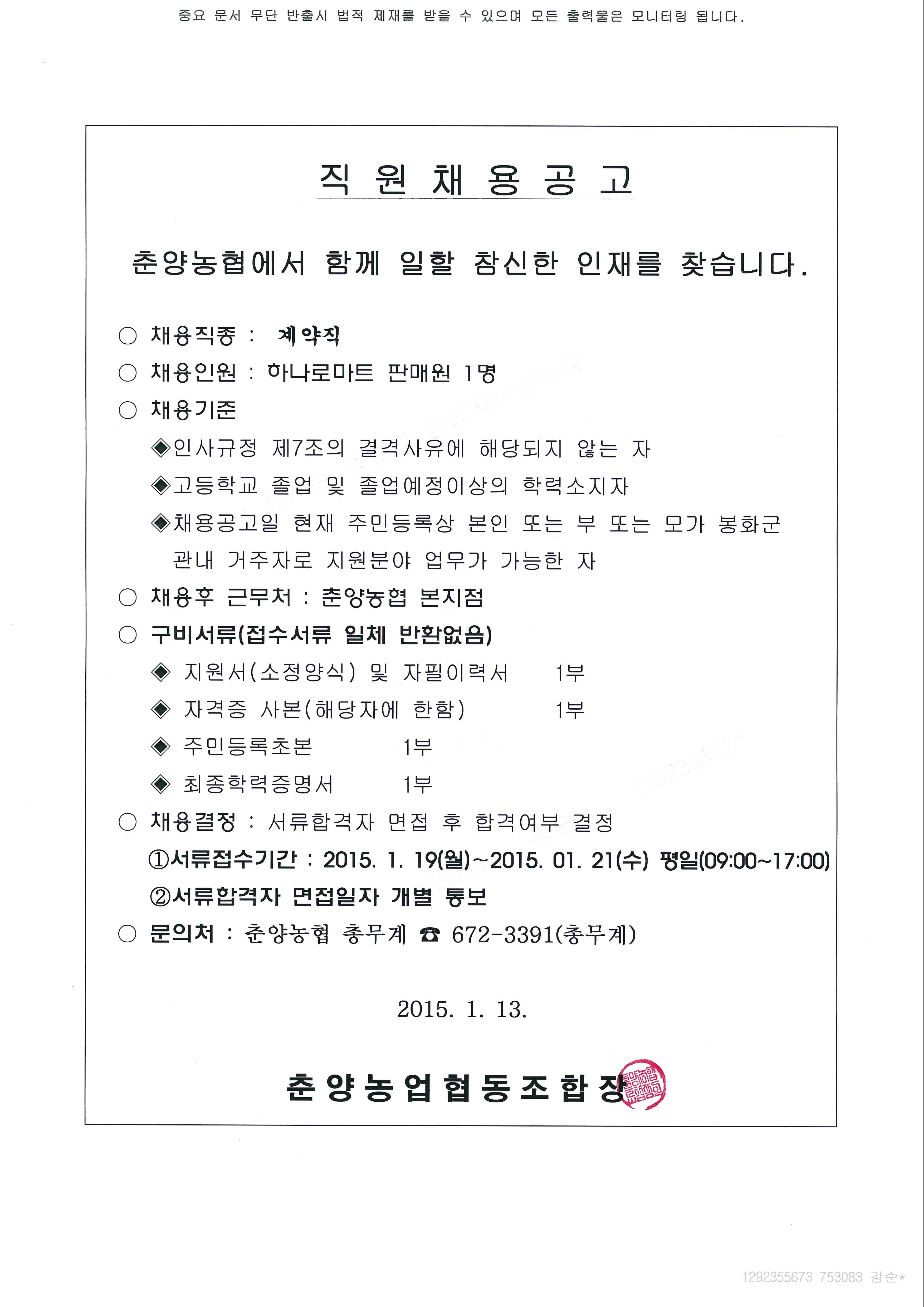 6. 문의처 : 춘양농협 총무계 / 강순희 팀장/ 054-674-3805