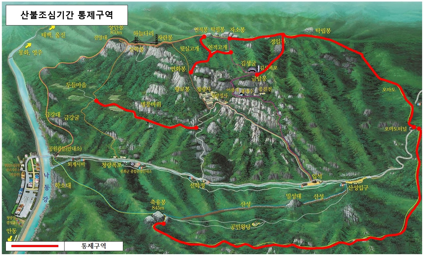 본 페이지의 관리부서는 청량산도립공원관리사무소 공원관리팀 (☎054-679-6651)입니다.최종수정일 : 2024.10.28